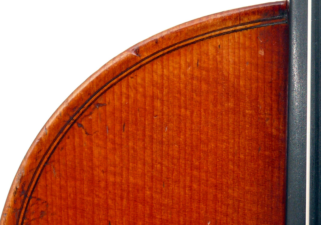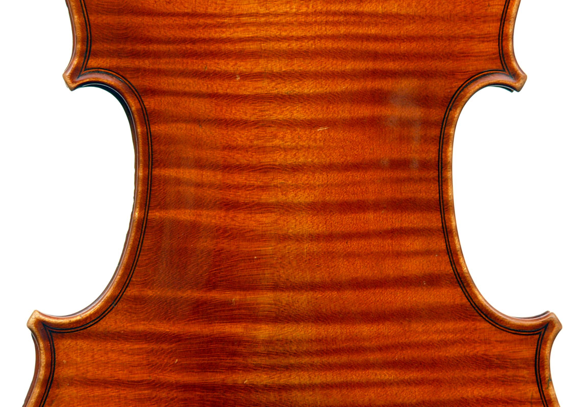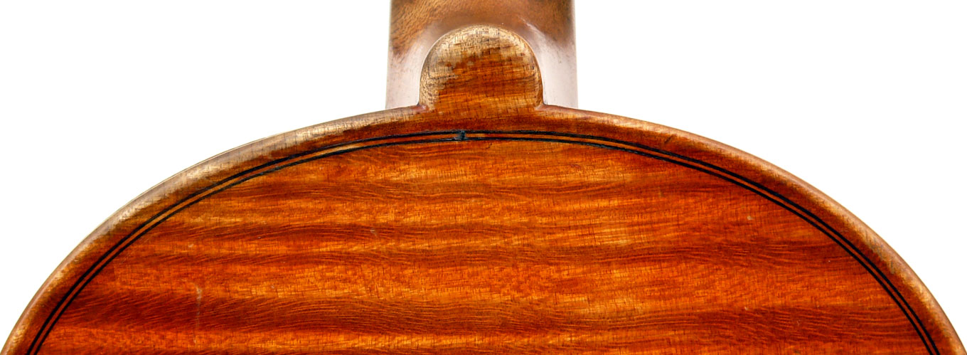 The top is of fine medium grained spruce; the one-piece back is of beautifully flamed maple. The craftmanship throughout is superb, reflected in a beautiful scroll and excellent purfling.