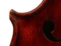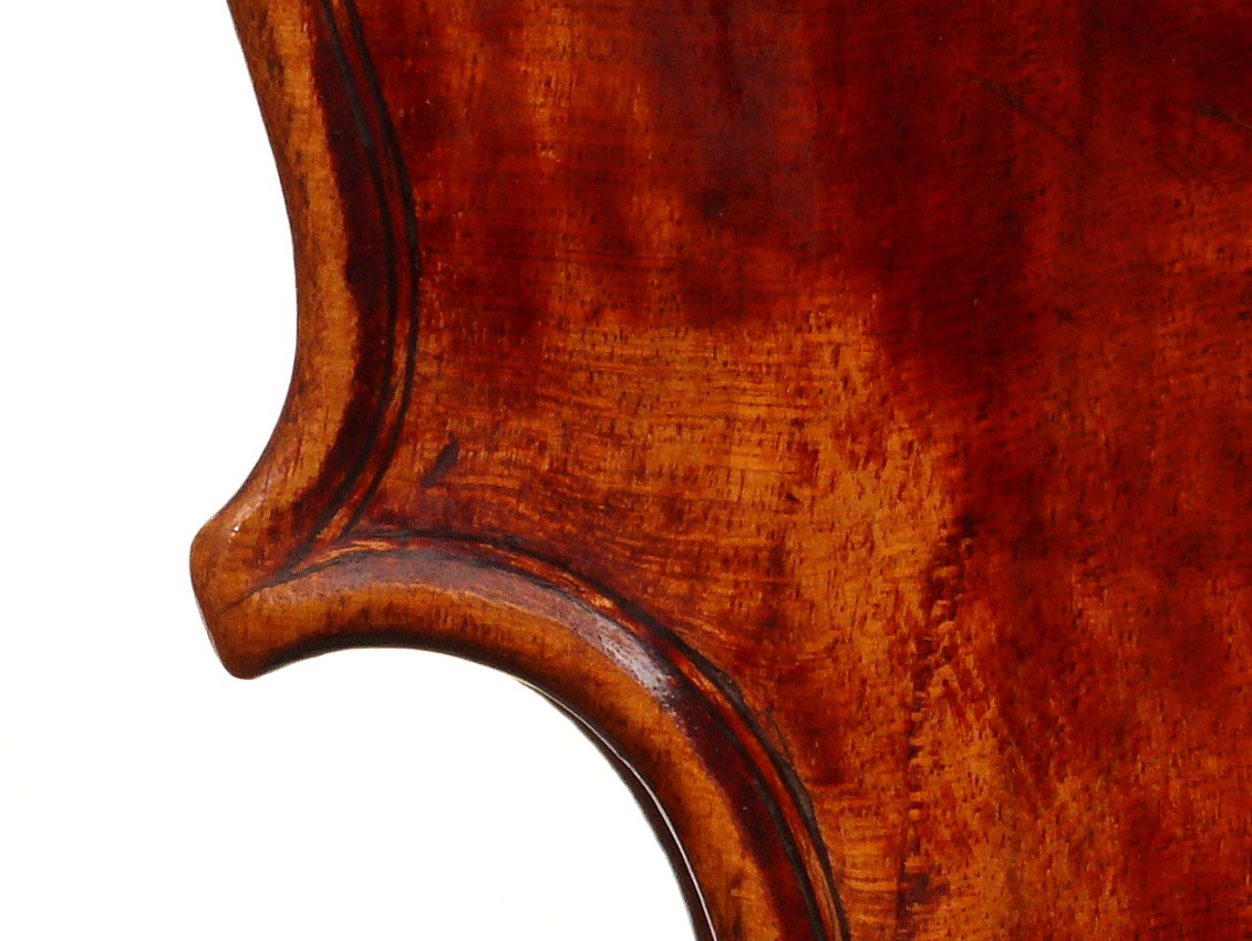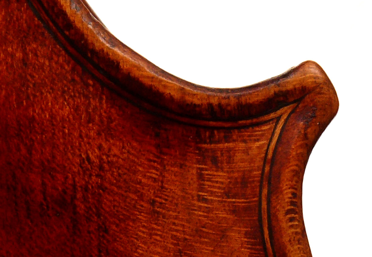 The purfling is superb and the mitres are faultless - the corners are of a craftmanship or a very high standard with fabulously executed bee-stings. More than anything it is this aspect of the violin, combined with its exceptional tonal properties, that show its origin to be by the hand of an unusually skilled maker.