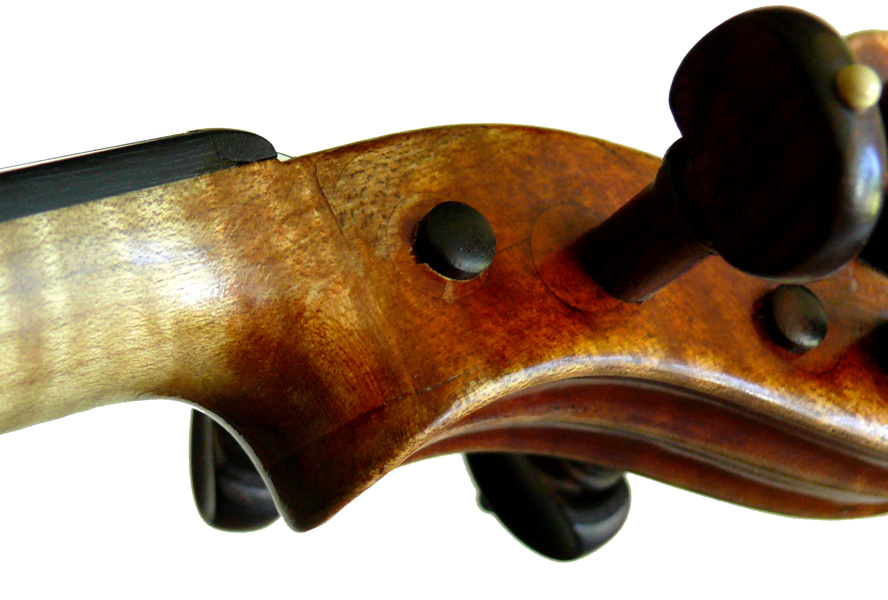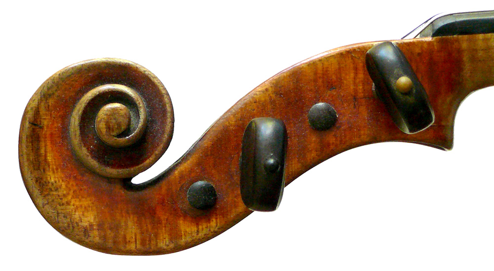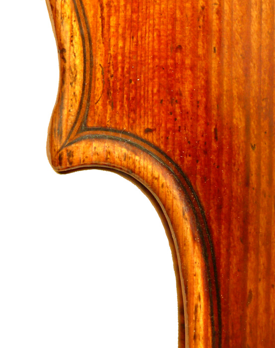 This violin, bearing a label ("G. B. Guadagnini Torino, 1779") is a concert instrument of the highest order, and a fine testimony of all the superlatives written about the Vollers. Until the authority, Claude Lebet in Rome, identified the violin as a Voller (and certified it as such), it was thought to be the work of Pressenda. It is an exceptionally beautiful violin: the two-piece back, ribs and scroll are of well-flamed maple with a distinct medium curl. The top is of medium to wide-grained tone spruce. Purfling and corner work are remarkably executed. The varnish is a beautiful transparent red-gold that greatly enhances the beauty of the materials.