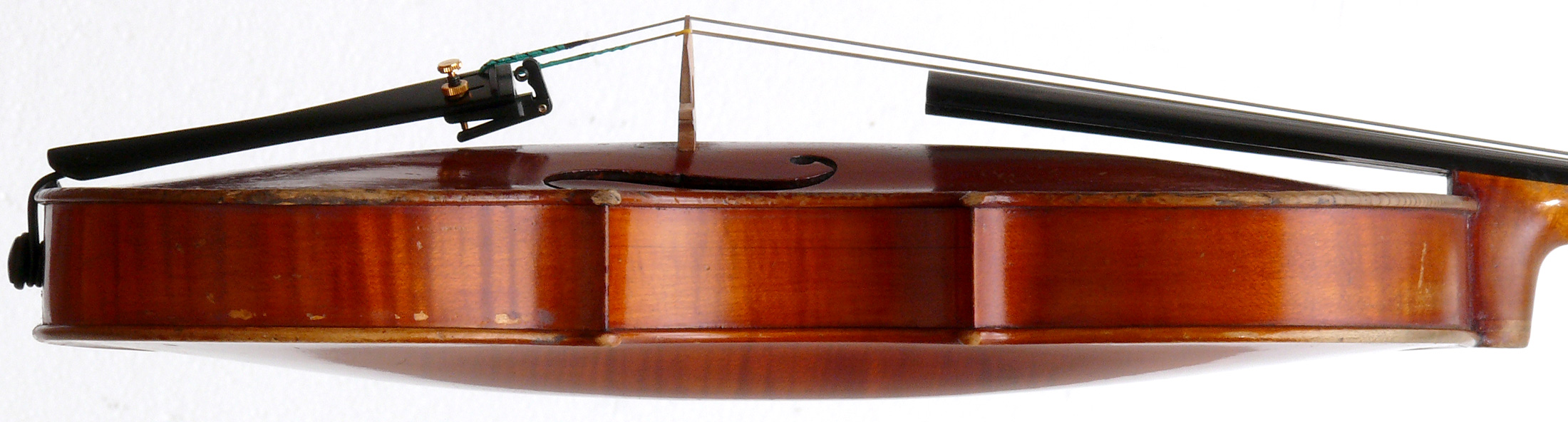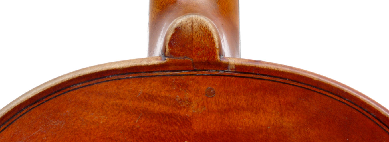 Structurally in excellent condition. This violin is completely free from cracks and evident repairs, although it seems that the neck has been reset, by Post in Amsterdam - the button as a minor crack in it, but an insert was made on the inside when the neck was reset. All marks on the table are superficial and have no structural or tonal bearing. The upper left edge on the front needs some restoration.