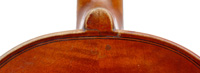 The two-piece back is of mildly flamed maple of narrow curl. The ribs, neck and scroll are of matching material, displaying only very mild flame, to the extent of being almost plain. However, the scroll is a masterpiece of attention, balance and elegance normally associated with Degani's scrolls, and was described by one French authority as 'unmistakably pure Degani'. The top is of tone spruce with narrow grain in the centre, broadening out to the flanks. The f-holes are elegant and balanced. The reddish amber varnish greatly compliments the wood.