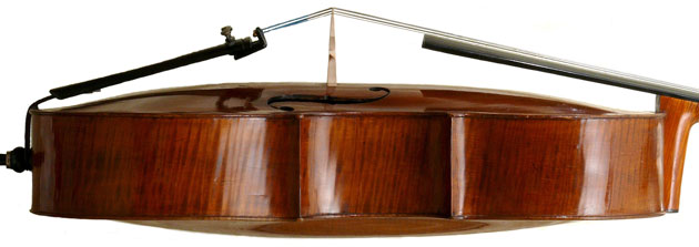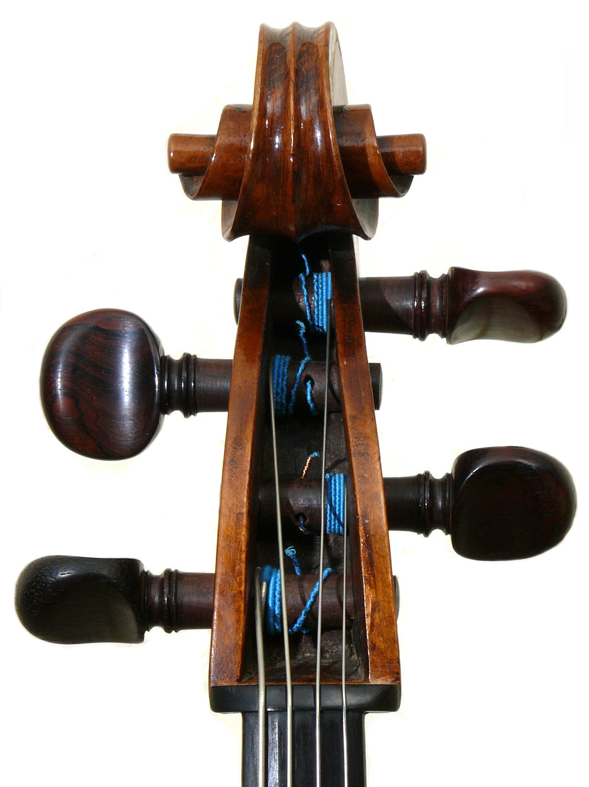 An interesting characteristic is that the lower rib is made in one piece, from c-bout to c-bout (photo). At present the instrument is fitted with an old-style ebony endpin.
