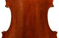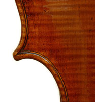 Varnish throughout is of an attractive golden brown with just a touch of red in places. The varnish appears to be original, but may have been touched up slightly in places. A wood replacement about 4 cm wide was made in the table and runs from the bottom of the right f-hole all the way down to the edge. This is extremely well-done and virtually invisible - I only became aware of it after doing the photos and comparing the grain under magnification - excellent craftsmanship.