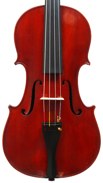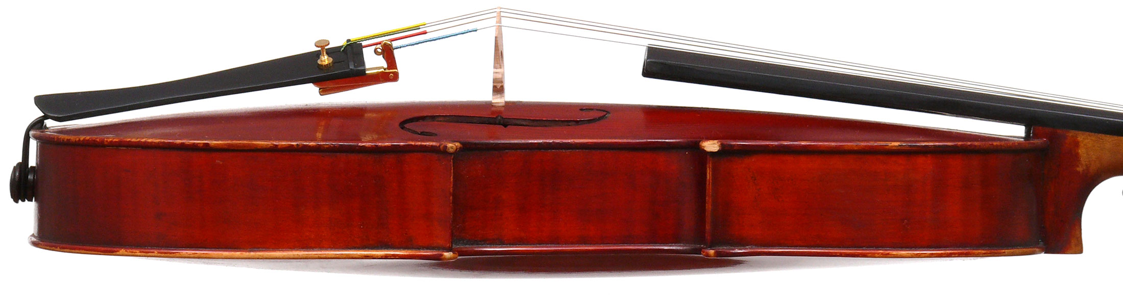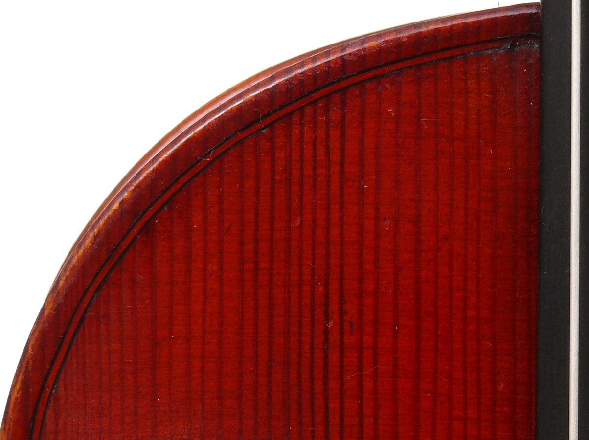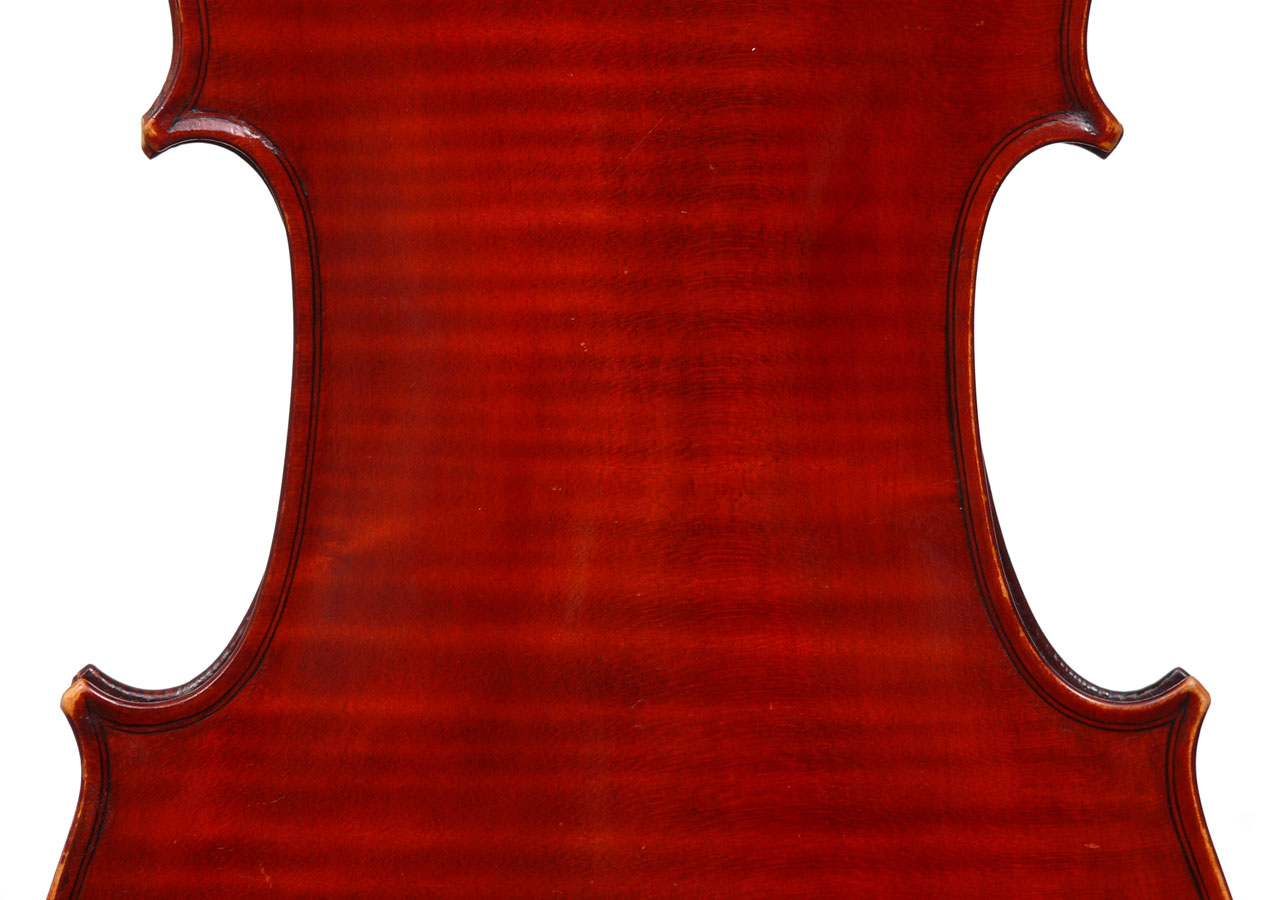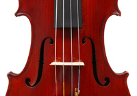This viola was recently brought from England, and is characteristic of Bellingham's work. What strikes one immediately is the beautiful one-piece back and the extremely attractive red varnish - transparent and favoring clear observation of the wood. The scroll is beautifully elegant and f-holes are well-proportioned and crisp. Purfling is nicely traced and shows a masterful and confident hand. This is altogether a very good-looking instrument.