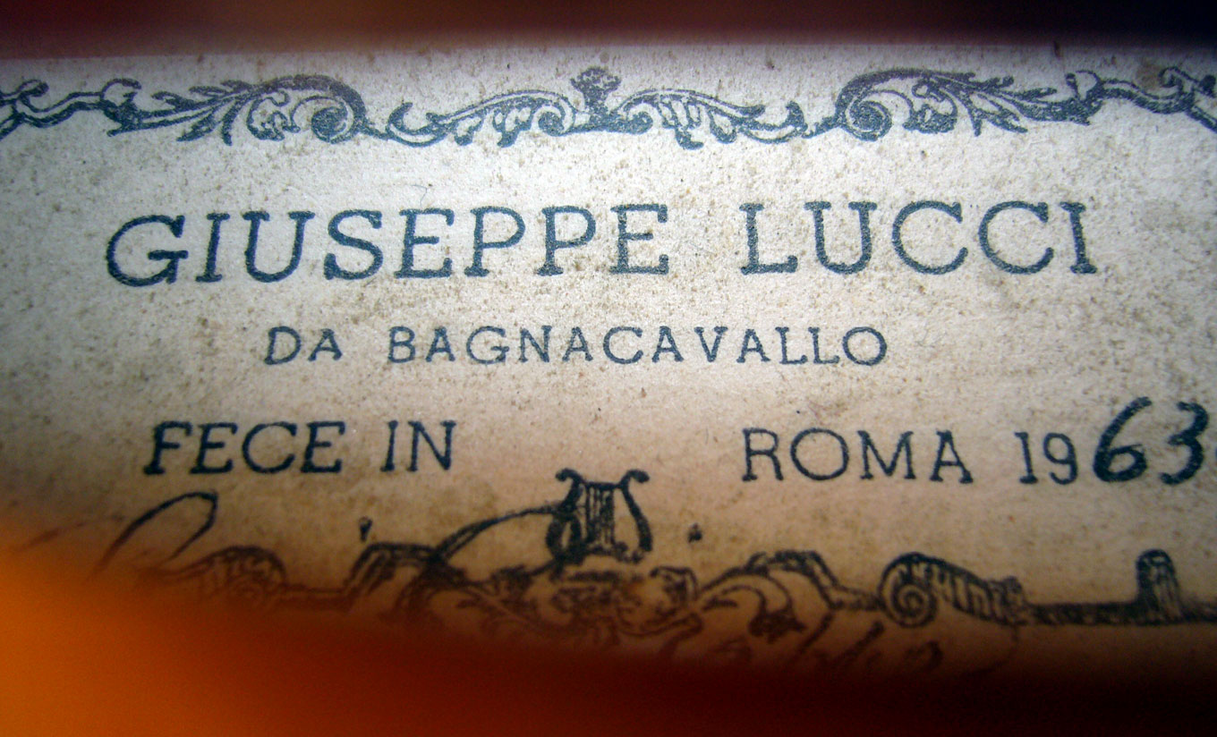 Giuseppe Lucci (1910-1991) was born in Bagnacavallo. He studied under Pietro Borghi at Modena. From 1940 onwards he worked in his native town, but he later on moved to Rome. In 1949 he won all the highest diplomas for a violin, a viola and a cello at the International Violin Making Competition in Cremona. Henley describes his workmanship as "superfine".