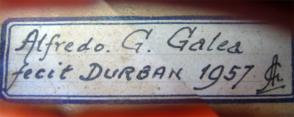 Galea set up his own workshop. He would remain in South Africa for a total of about 16 years, alternating between Durban and Cape Town. By the late 50s he was firmly established as a violinmaker of a very high order.