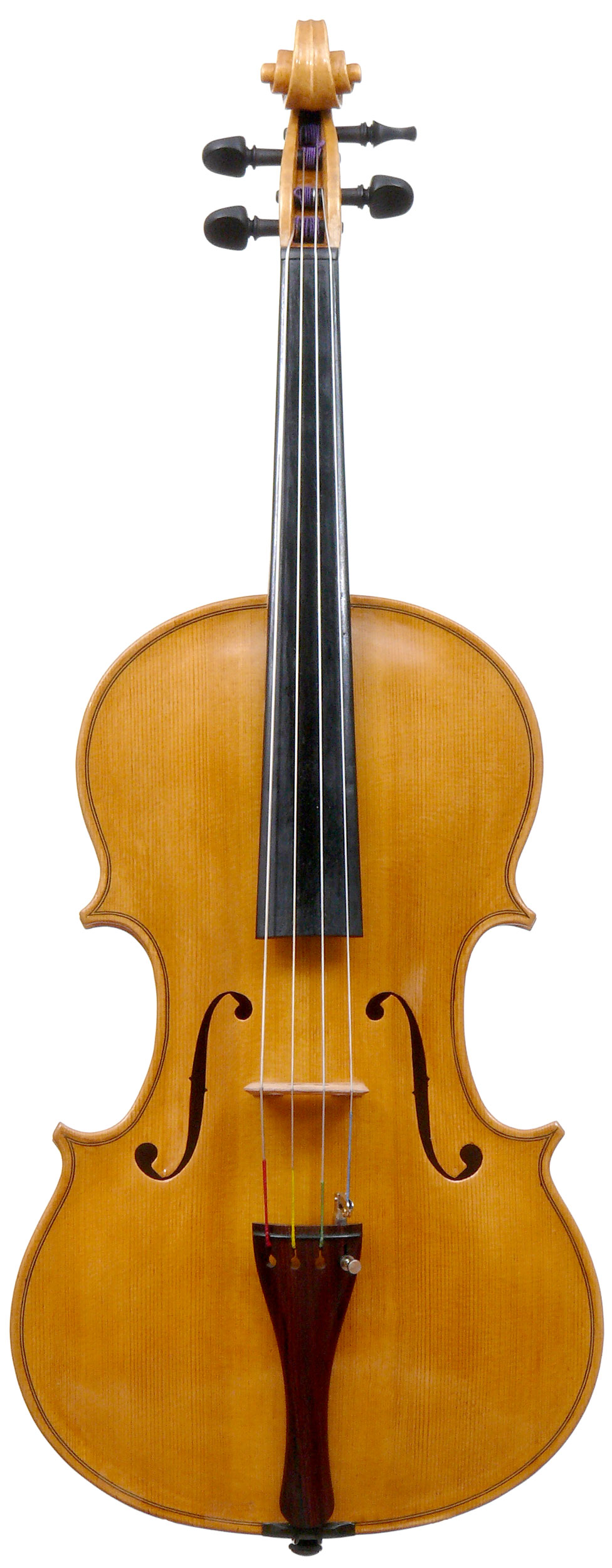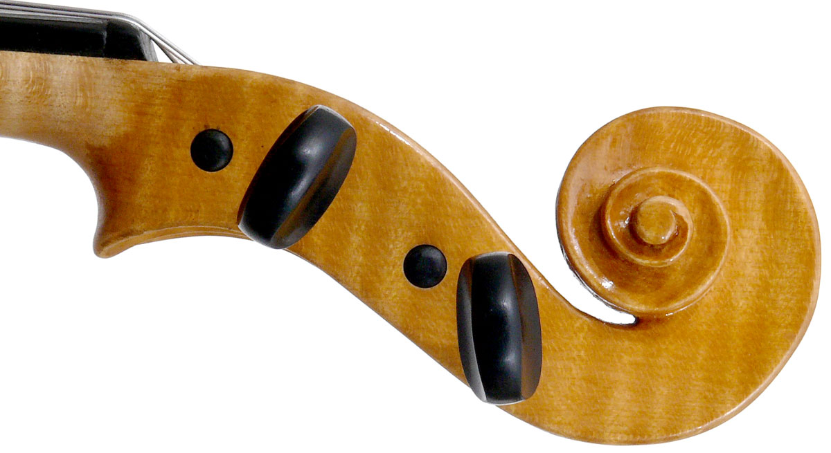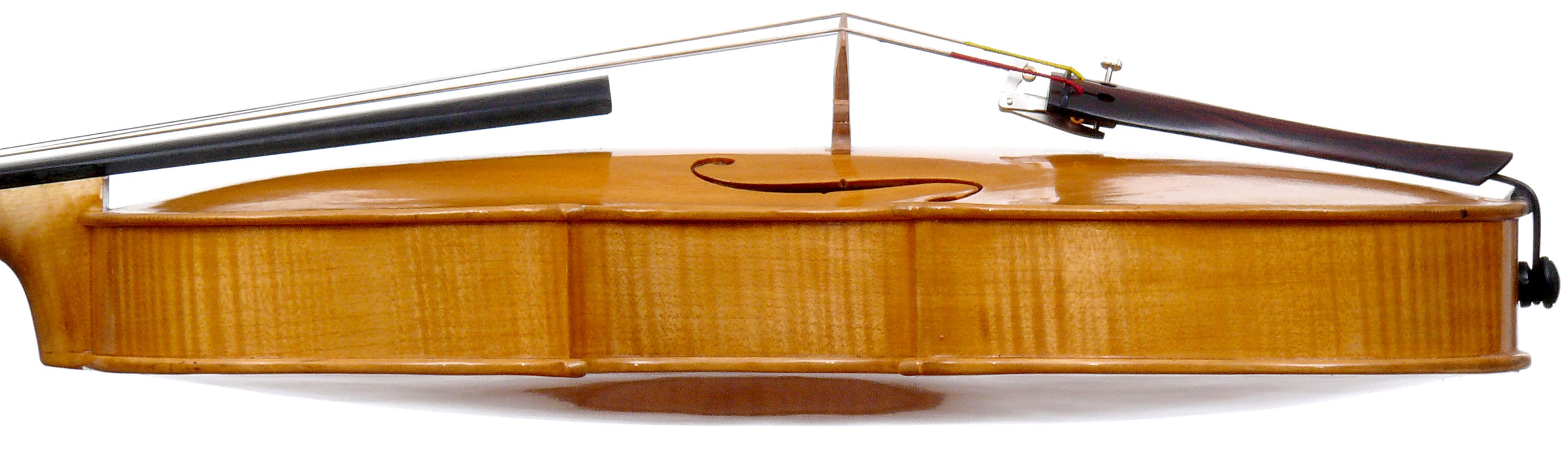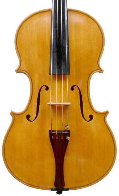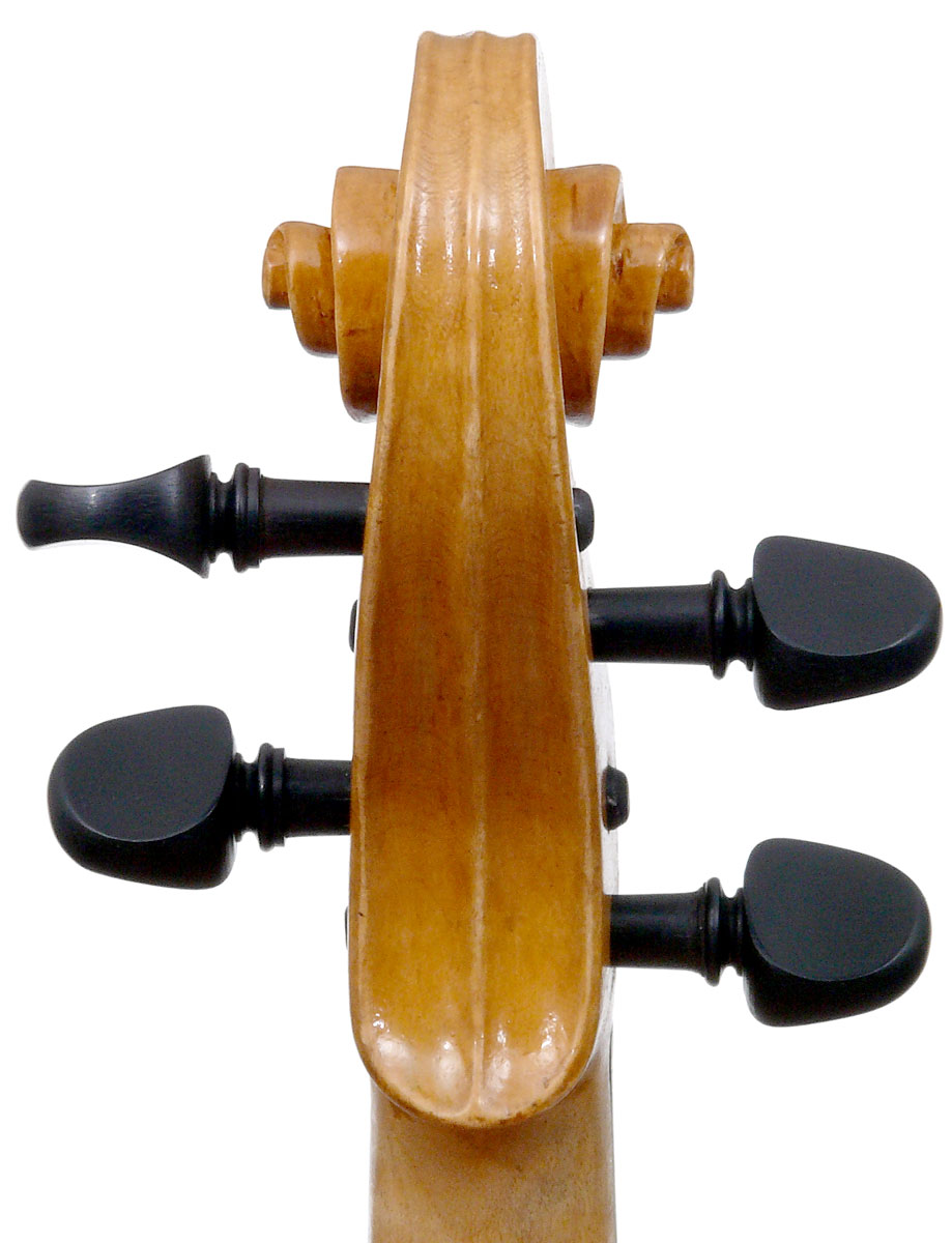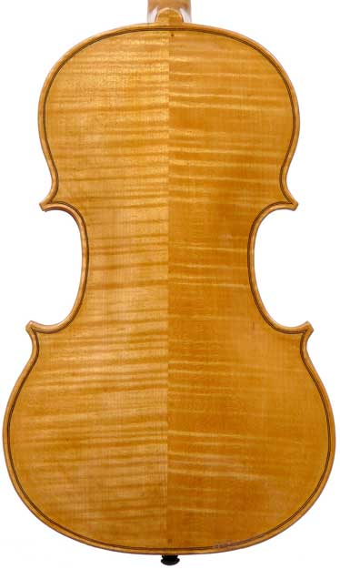 With a back length of 38.9 cm, this is a small and comfortable viola. Its shortness is compensated for by fairly wide bouts. It speaks easily with a warm tone.
