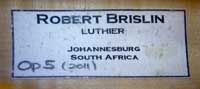 Robert Brislin is self-taught, having completed his first violin in 2006. His interest in violins started at age 10, when he began playing the violin. He was so fascinated by the instrument that he modelled miniature violins out of balsa wood. This led to a deep-seated desire to one day make a real violin.