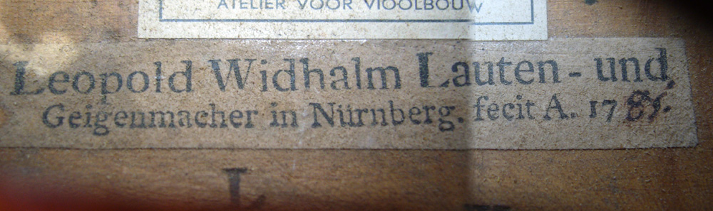 Leopold Widhalm was born in 1722. However, there is some divergence over the date of his death, which directly affects the attribution of this violin. Both René Vannes and Lütgendorff give the date of his death as 1776, on 7 June to be exact. However, the authority, William Henley states that Widhalm worked in Nürnberg until 1786, at which point, in 1787, his son (Martin Leopold) took over the business.