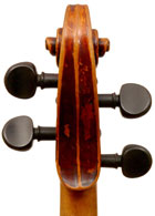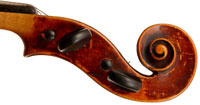 This violin is in superb condition, without a single crack or discernable repair anywhere in the body. The arching and general model is reminiscent of Stainer, but not entirely. The f-holes are crisp and tidy, elegant and balanced. The scroll shows a fine hand and attention to the balance - really beautiful. The top is of finely grained spruce with a very straight grain opening to the flanks. The two-piece back is of mildly flamed maple with a straight medium curl. The ribs have a more narrow flame.