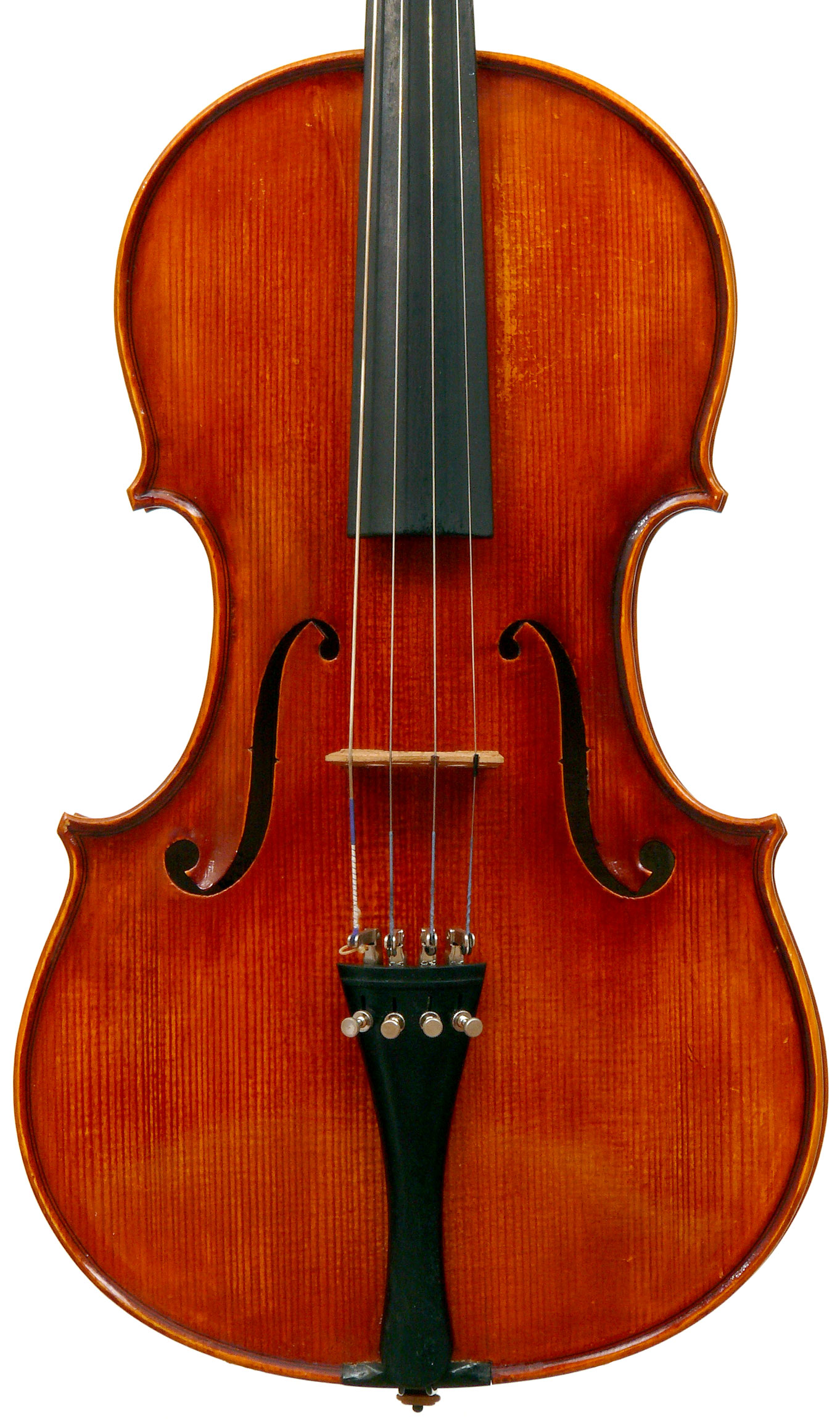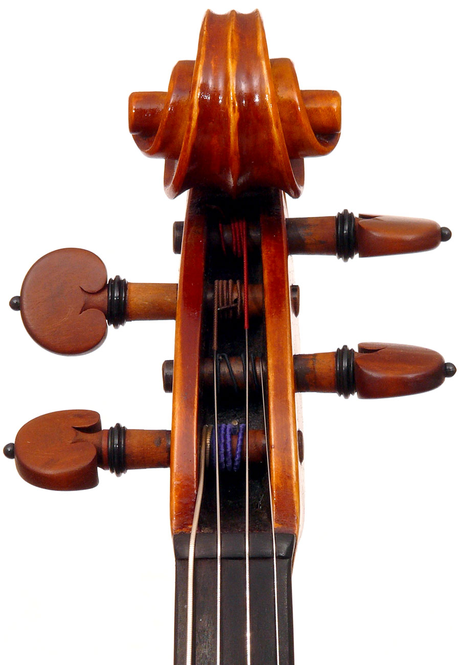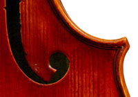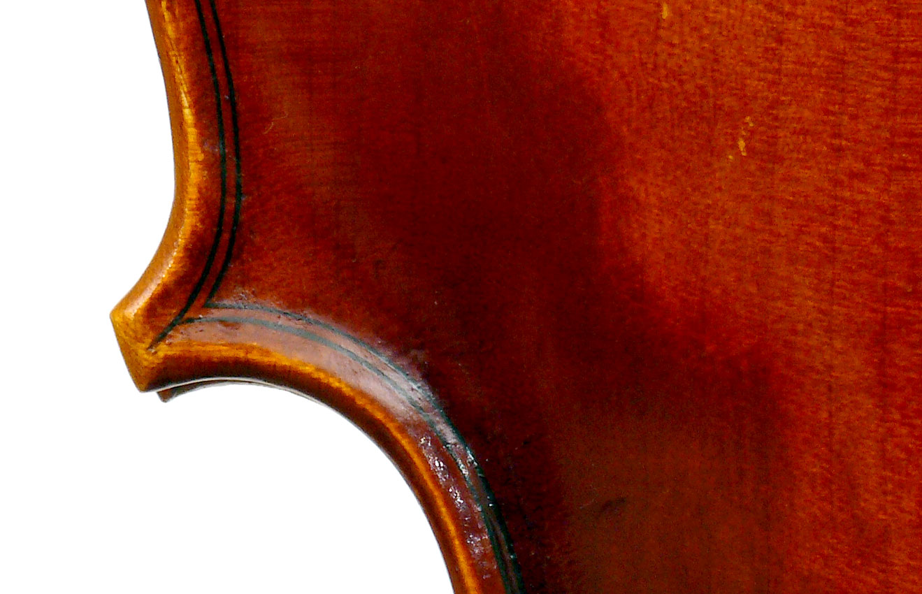 This viola is is really attractive with its rich red-brown varnish over a yellow ground. One is struck by the handsome one-piece back and the unusually elegant and well-positioned f-holes. Otherwise the instrument is characterized by excellent workmanship - crisp and steady.