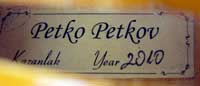Petko Petkov was born in Kazanlak, in 1975, and today, at a relatively young age, is one of the leading violin makers in Bulgaria with an internationally established reputation. He completed his apprenticeship under Vlado Naidenov and is a member of the Regional Association of Violin Makers in Kazanlak. His instruments are sold mainly in Italy, Canada and Japan, but are also listed in inventories and catalogues throughout the world.