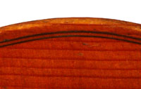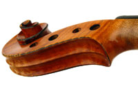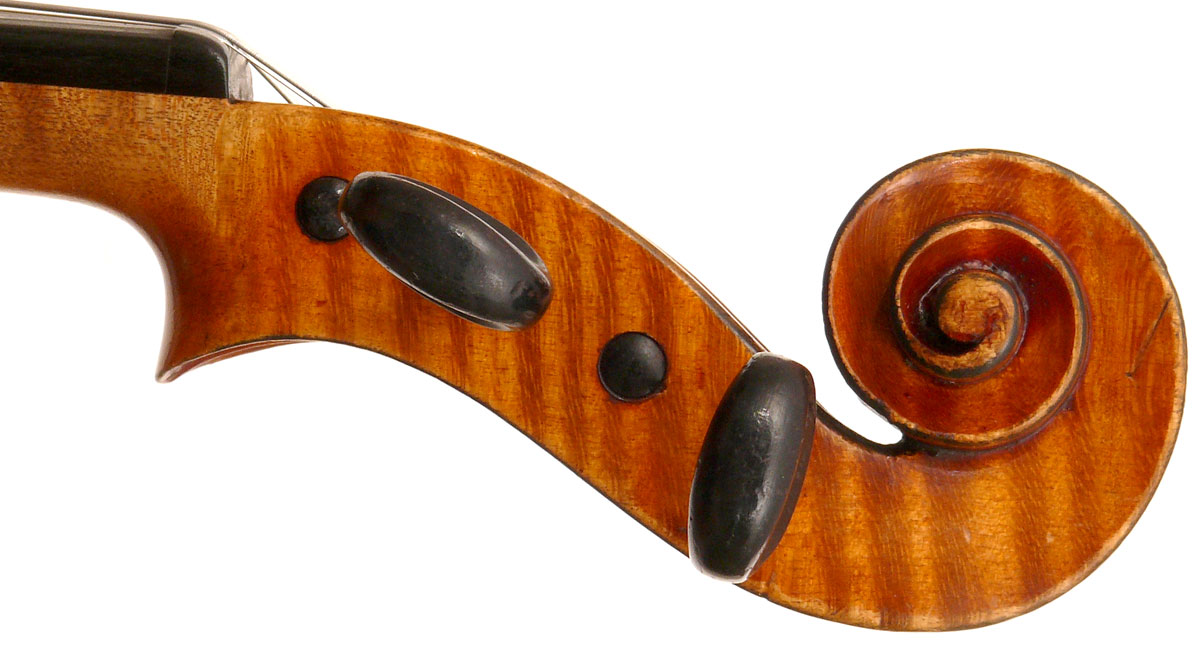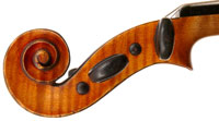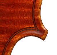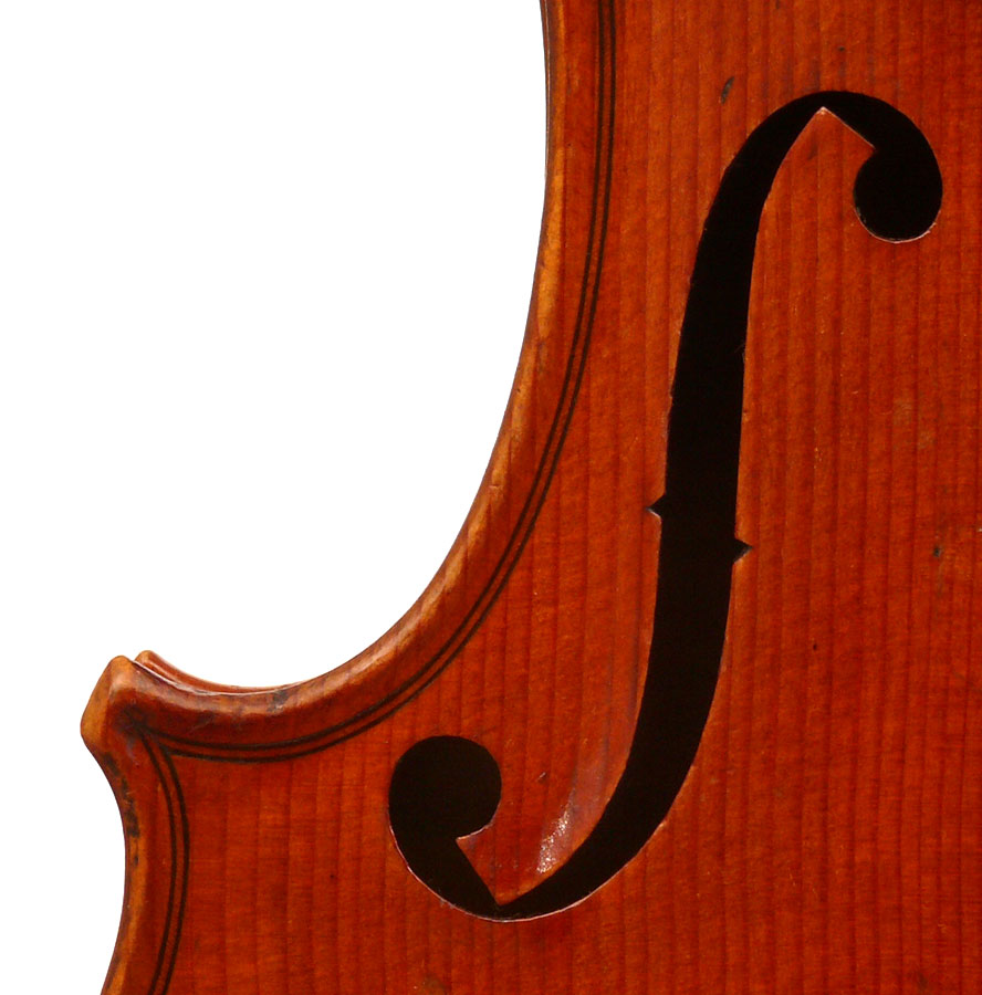 This is a beautiful violin, reflecting the most refined craftsmanship and attention to detail throughout. Not only are the materials attractive, but the attention to detail in the purfling, the mitres and just about every other aspect of good lutherie leave little to be improved on. The fs are beautifully crafted, crisp sharp work, elegant and balanced and with nicely fluted palettes. It follows the Stradivari model - beautifully outlined and elegantly proportioned.