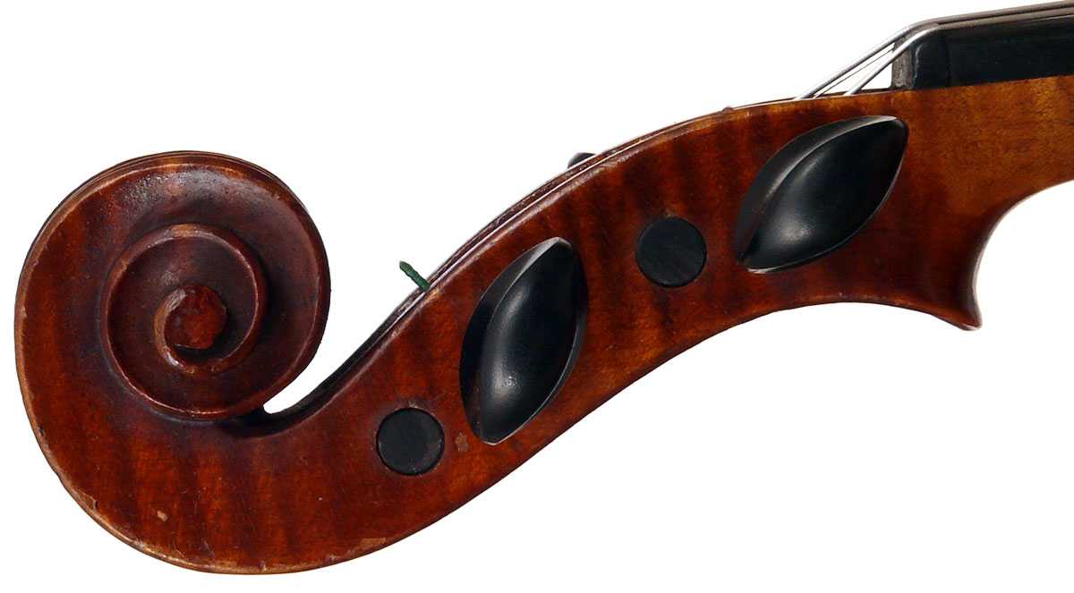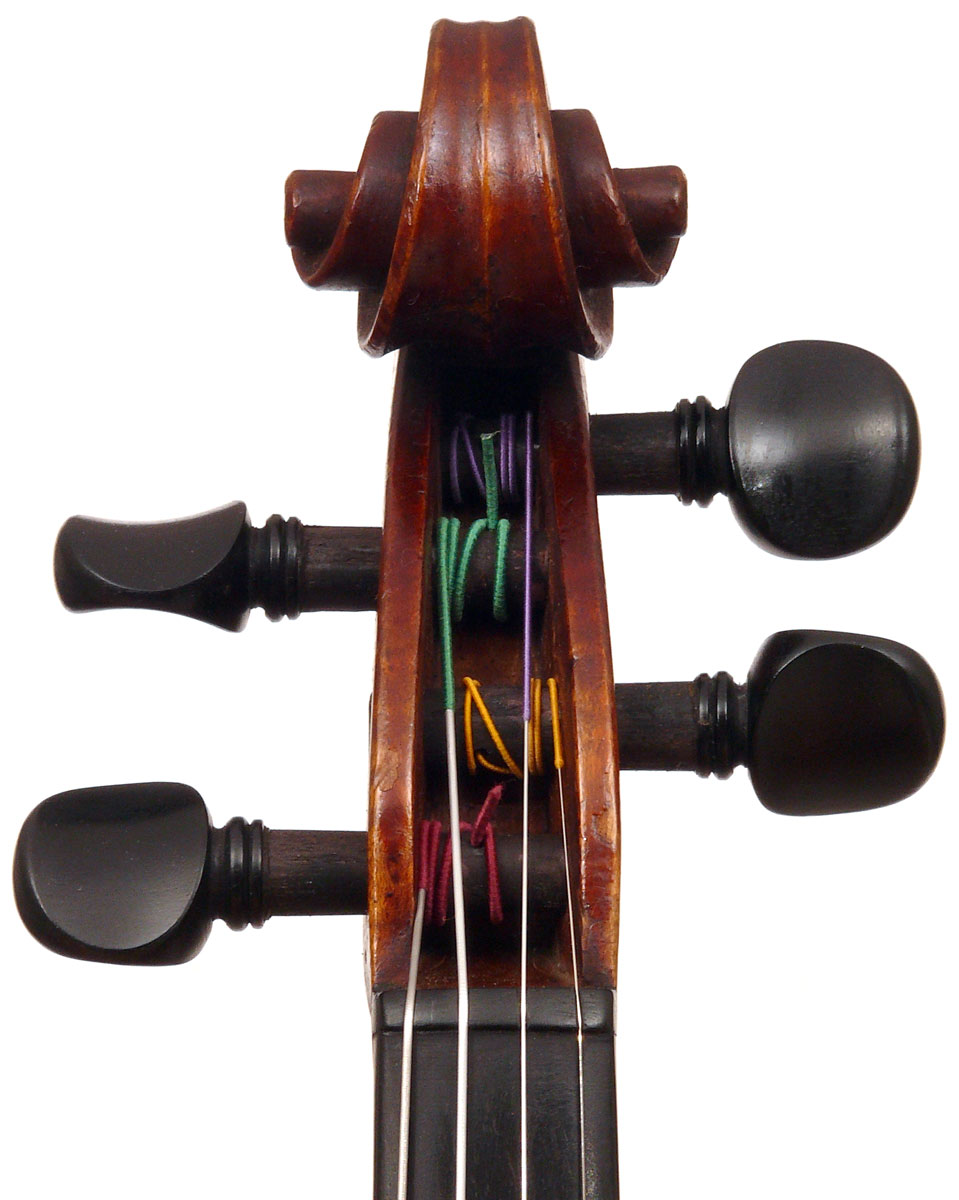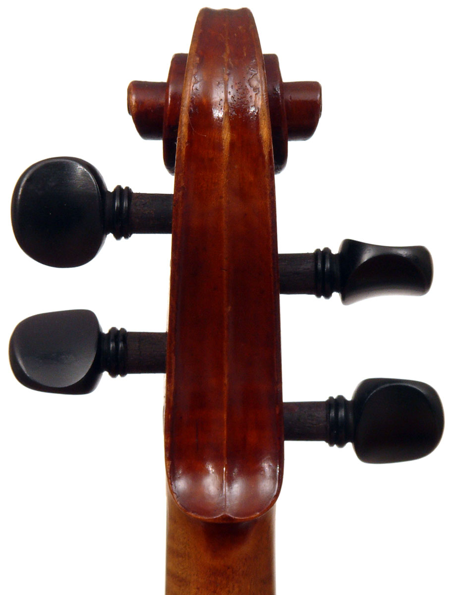 Very good. No cracks or structural damage. Some superficial marks in the varnish. A wooden pin is inserted in the button, through into the neck - this has no impact on the structural integrity of the violin. New bridge and pegs have been fitted.