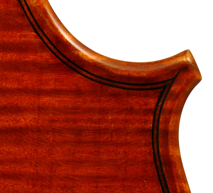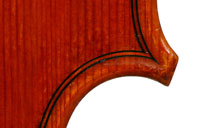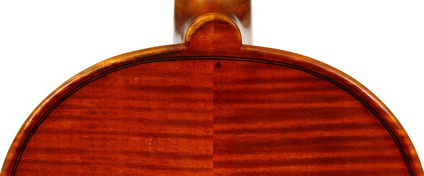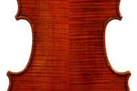 This violin was make in Kazanlak in 2007 and is in superb condition. Its most striking feature is its beautiful two-piece back of nicely flamed Balkan maple with a straight narrow curl, repeated in the ribs, neck and scroll. The tracing of the purfling is clean and really impressive, with impeccable corner work - the bee-stings are neat and demonstrate an experienced and steady hand. The table is of fine tone spruce with a straight medium grain.