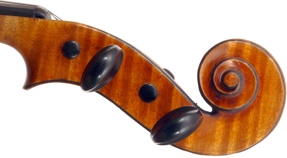 This instrument is in an exceptionally fine state, one may almost say in mint condition - it has one small benign crack next to the lower saddle, repaired and held directly by the endblock. The varnish is original - beautiful and clear honey-brown with high transparency, allowing the appreciation of woods. The marks on the top right quarter are merely superficial and typical of an instrument which had been well-used for some 140 years. The two-piece back, ribs, neck and scroll are of really nicely figured maple with a distinct medium curl - very appealing. The top is of medium grained tone spruce. The corners and purfling in this violin are truly impeccable. The Fs are superbly elegant - reminiscent of Pique's work, making the overall impression of this violin extremely pleasing on the eye.