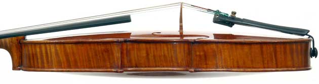The set-up has been changed since the photos were taken: the violin now has a ebony Hill-type tailpiece, fitted with one golden adjuster on the e-string.