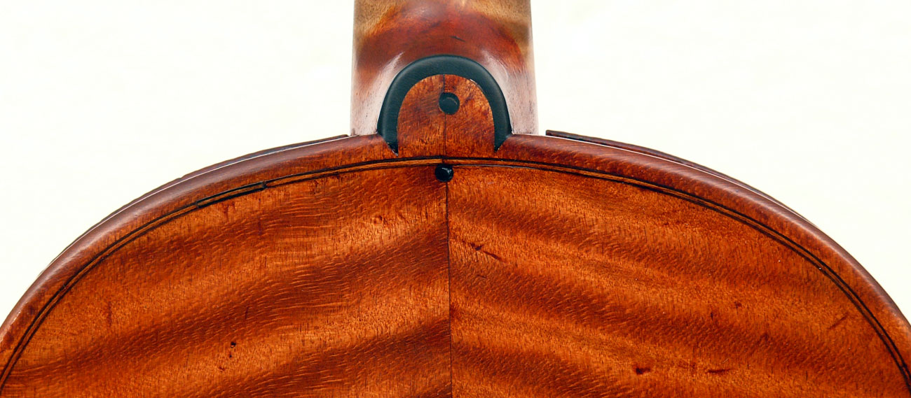 What is interesting though is that the outward-slanting Fs and open-grained top much conform to the Vuillaume School's preferences, along with a nicely-flamed two-piece back with the same maple used in the ribs.