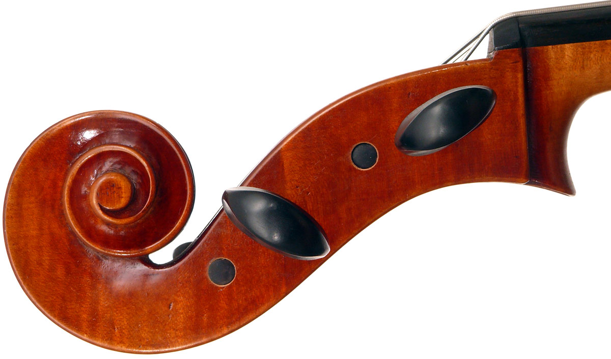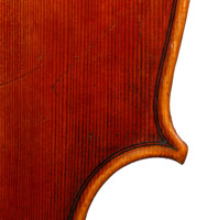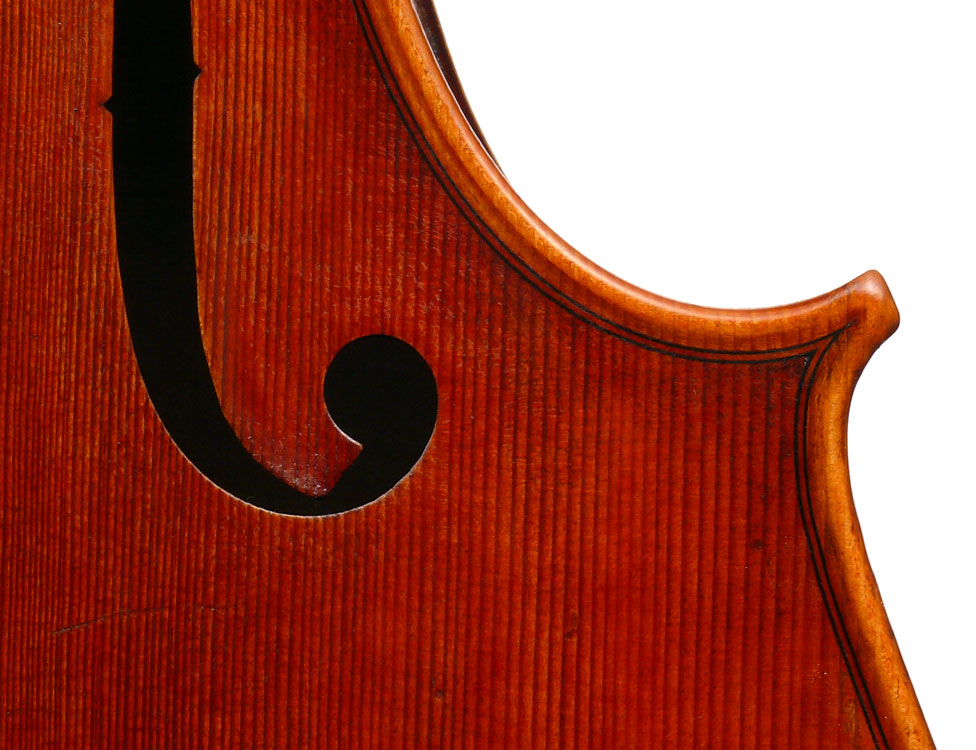 Close examination of this instrument shows remarkably tidy work with meticulous attention to detail - take a look at the photos and in particular the cornerwork which shows impeccable mitres and finish to the corner shape. The scroll is exceptionally balanced and elegant. Throughout this cello gives evidence of craftsmanship of a high order.