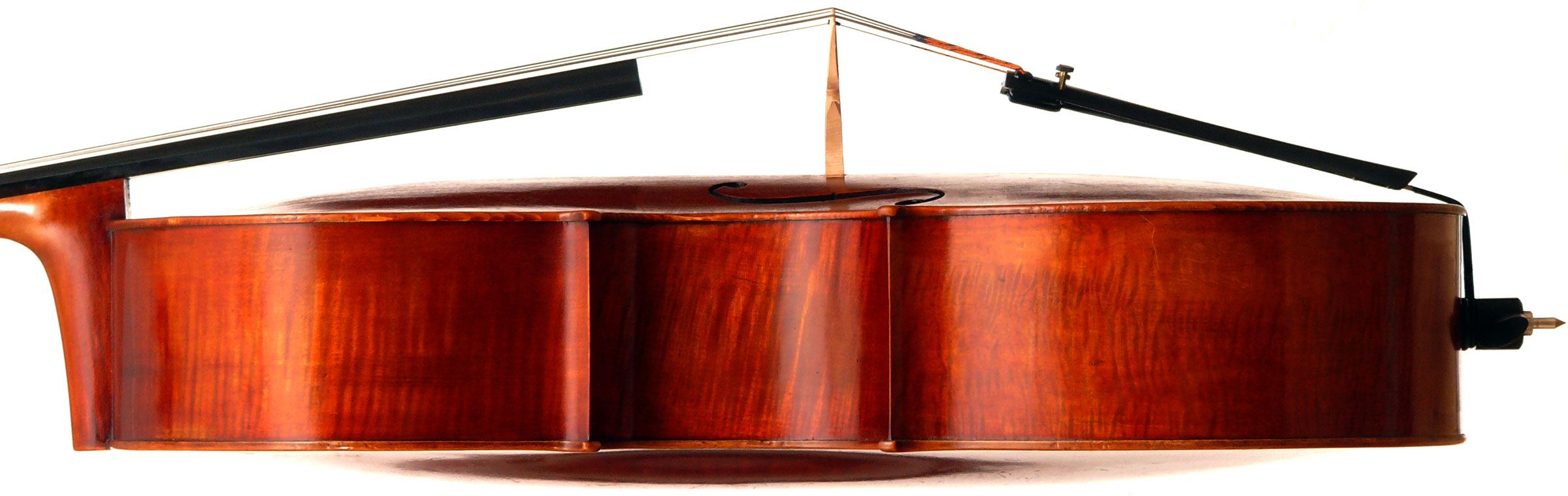 This cello was especially commissioned and it took 2 months to complete. The objective was an instrument with strong tonal properties. The result is a cello representing an amalgam of excellent workmanship and an excellent choice of materials resulting in excellent tonal properties which competes with the best output of some leading master instrument builders.