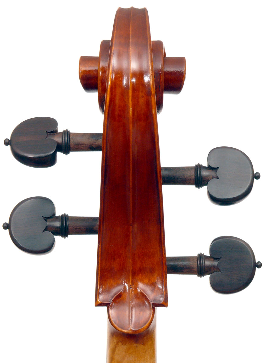 This cello is made of attractive materials and is at first glance an appealing instrument which follows the Stradivari model. Its good looks are matched also by its tonal properties which are strong and responsive - an easy instrument to play on. The tone is of good solo quality - balanced and with carrying power and penetration.