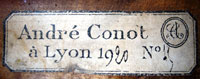 The label in this violin is a direct replica of a known André Conot label which has been replicated in the Dictionnaire Universel des Luthiers of René Vannes (label no 523). It has the same reference number and handwriting and there can be no doubt that the label in this violin is a replica of that label (The photos below show the label in this violin and compares it to the replicated Conot label in the Vannes publication). The practice of copying labels out of books and other publications and fitting them into instruments is an outrage aimed at misleading and deceiving and is invariably driven by a financial imperative. Which all means that this violin has manifestly nothing to do with André Conot.