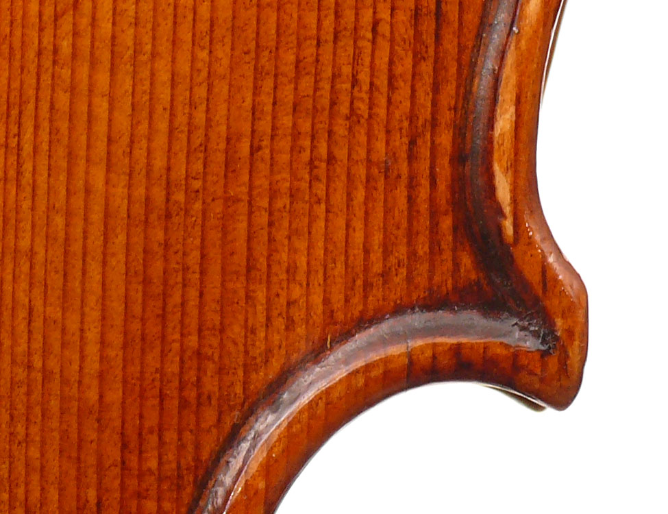 This violin is a good example of the quality of workmanship that emerged from high-end trade studios in Europe during the first part of the 20th century, in which a real effort was made to make good instruments accessible to those who could not pay a fortune for a violin. Those instruments, produced mainly in Germany and France, are highly esteemed today and fill an important niche in the violin world.