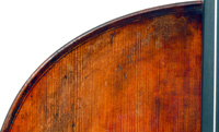 This cello is a new instrument, but has been artificially antiqued to resemble an instrument from the 18th century. Such techniques are quite refined and specialized and even include inducing (and repairing) a few edge cracks. In this case a repaired deliberate crack runs up from the saddle, adding to the instrument's appearance as being genuinely old. Yet, the antiquing is only skin deep - the cello is in excellent condition as one would expect from an instrument made only last year and being virtually unplayed.