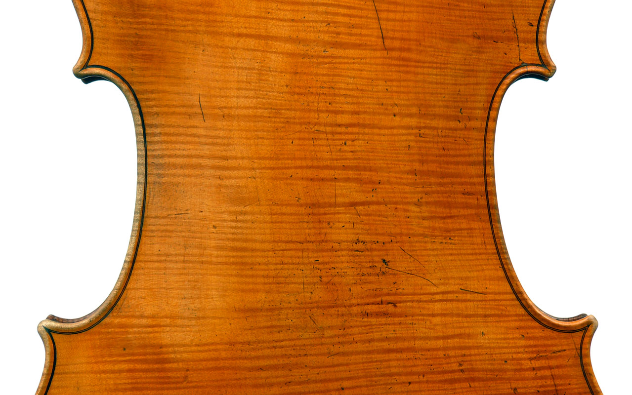 With a length of back of 72.3 cm, the instrument's body is slightly shorter than the standard Stradivari model, yet the stop length at 69.5 cm conforms to the norm. Further, the shorter body length is made up for by the cello being slightly deeper in the rib and marginally broader over the body. However, it remains an extremely attractive instrument on the eye, well-proportioned and elegant.