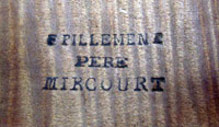 It bears the brand in the back of François Pillement, known as Pillement Père, an accomplished and respected maker who was active in Mircourt between 1775 and 1820. Other than the branding, this instrument conforms broadly to the characteristics associated with this maker's work, being a fondness for broadly grained wood in the top, good well-figured maple for the sides and back and particularly the light golden oil varnish, supple and very translucent - allowing for observation for the beauty of the woods. Pillement excelled particularly in the making of cellos, which Henley describes as having 'finer and stronger tone.'