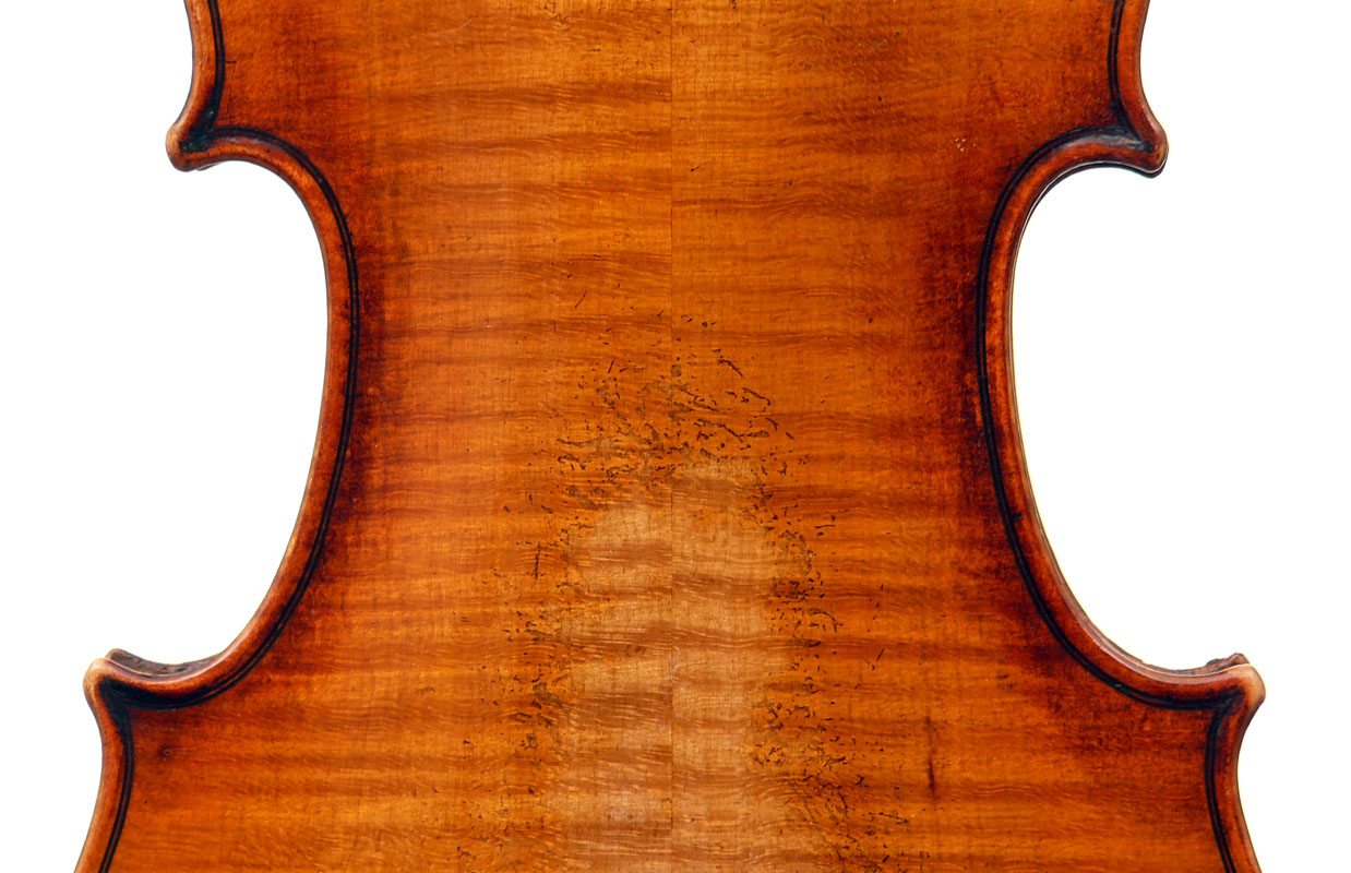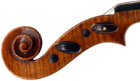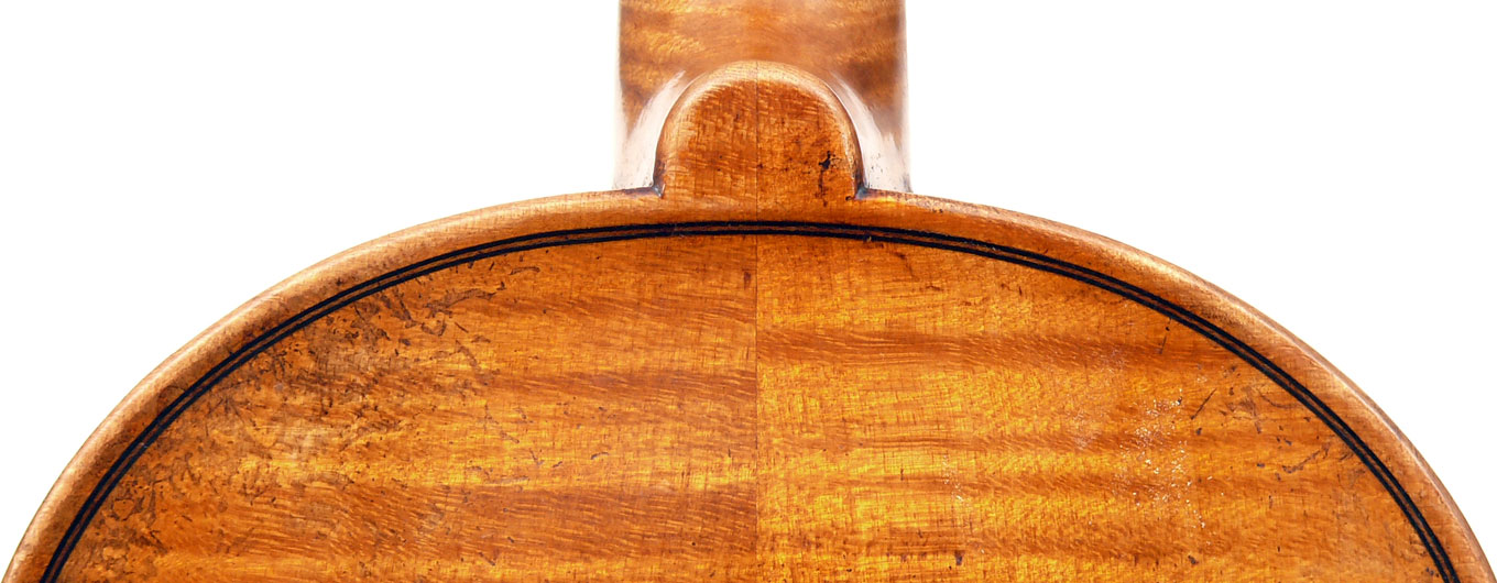 This violin is made from excellent woods - it has an attractive two-piece back - much a trademark of good JTL instruments - of nicely figured maple with a straight narrow curl, repeated in the ribs. The neck and scroll are of really attractive maple. The varnish is a light golden brown. Craftsmanship is excellent throughout and the violin was made with attention to detail.