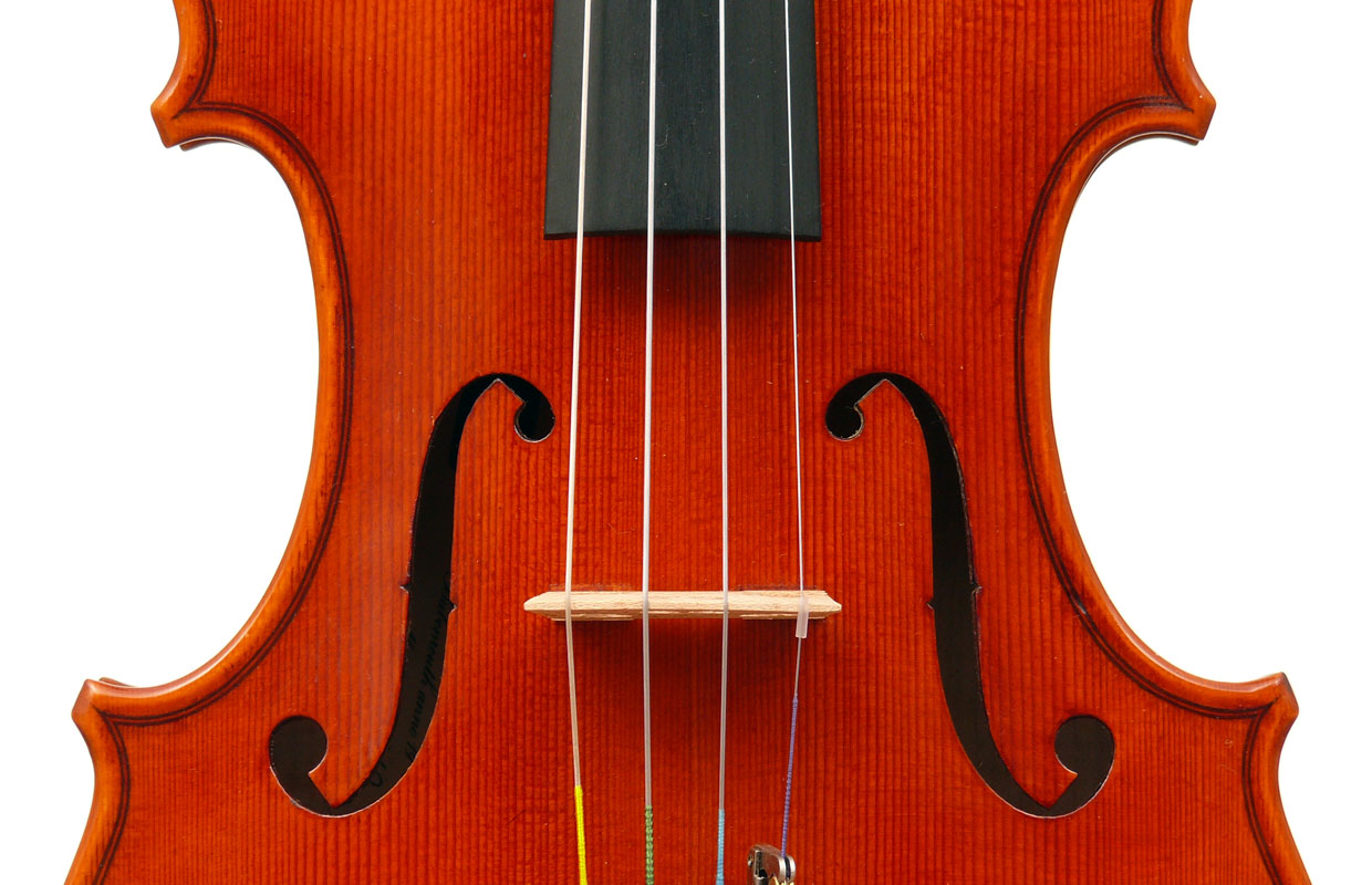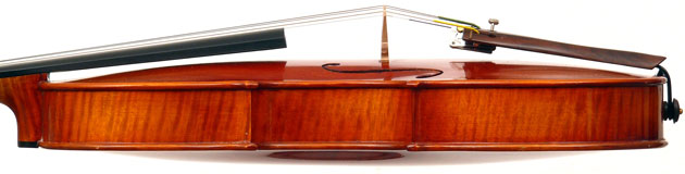 This violin is based on the Stradivari pattern and conforms to the highest standards one could expect from a good trade (commercial) instrument, with impeccable craftmanship evident throughout. The choice of materials is good and it has visual appeal.
