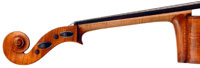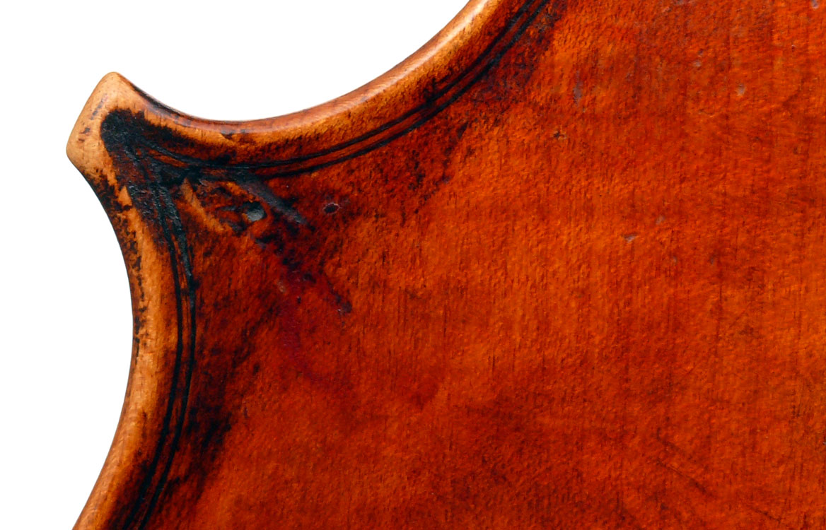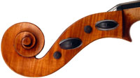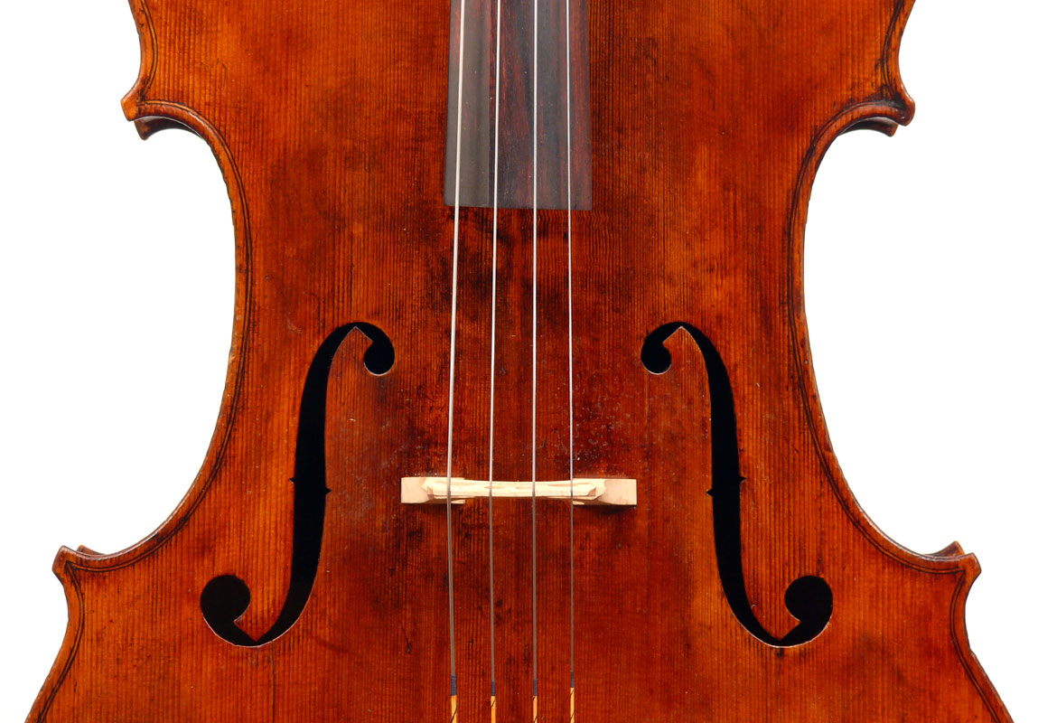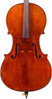 This cello is blatantly based on the Stradivari model - an attractive instrument with elegant lines. All the materials in it are good, although the back, sides and scroll are of less-figured wood, the feeling with this cello is that the emphasis was on making a sonorous and responsive instrument, rather one of shallow prettiness. The varnish is in keeping with what is stated in various publications about this maker's work - his original formula was of a golden-brown oil varnish which over the years oxidized into a beautiful reddish-brown or amber shade - exactly what we see in the cello.