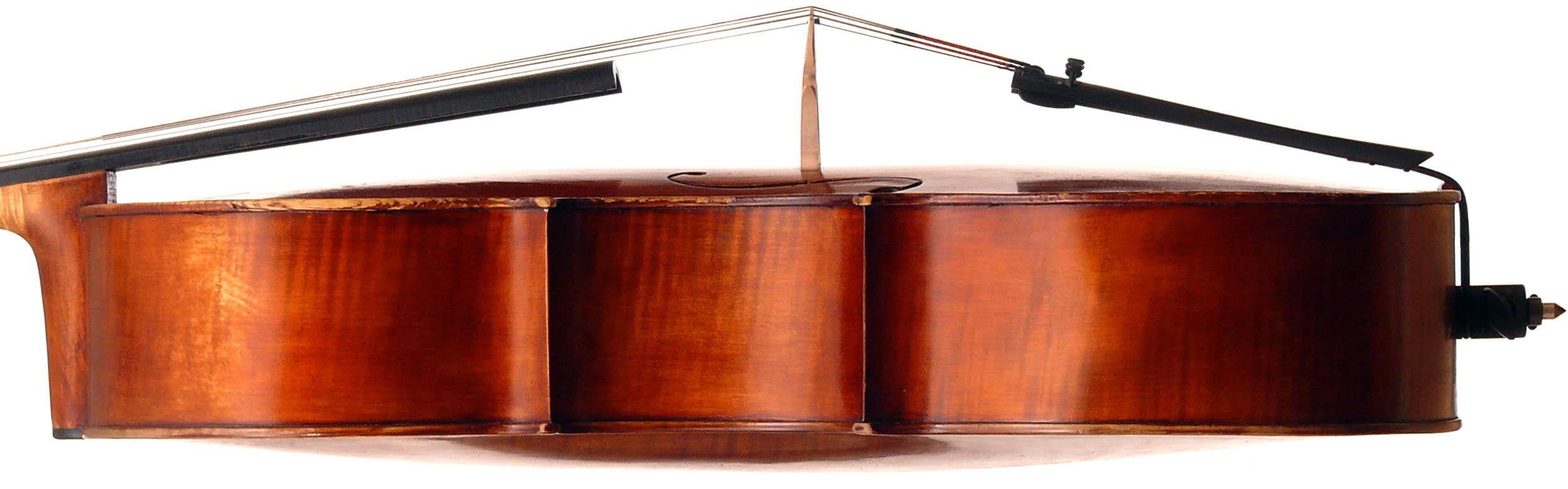 This cello is superbly toned with an open richness, full of projection and clarity. It is well-balanced across the strings and its ease of response makes it easy to play. All who have played it have been thoroughly seduced by its qualities and beauty of tone.