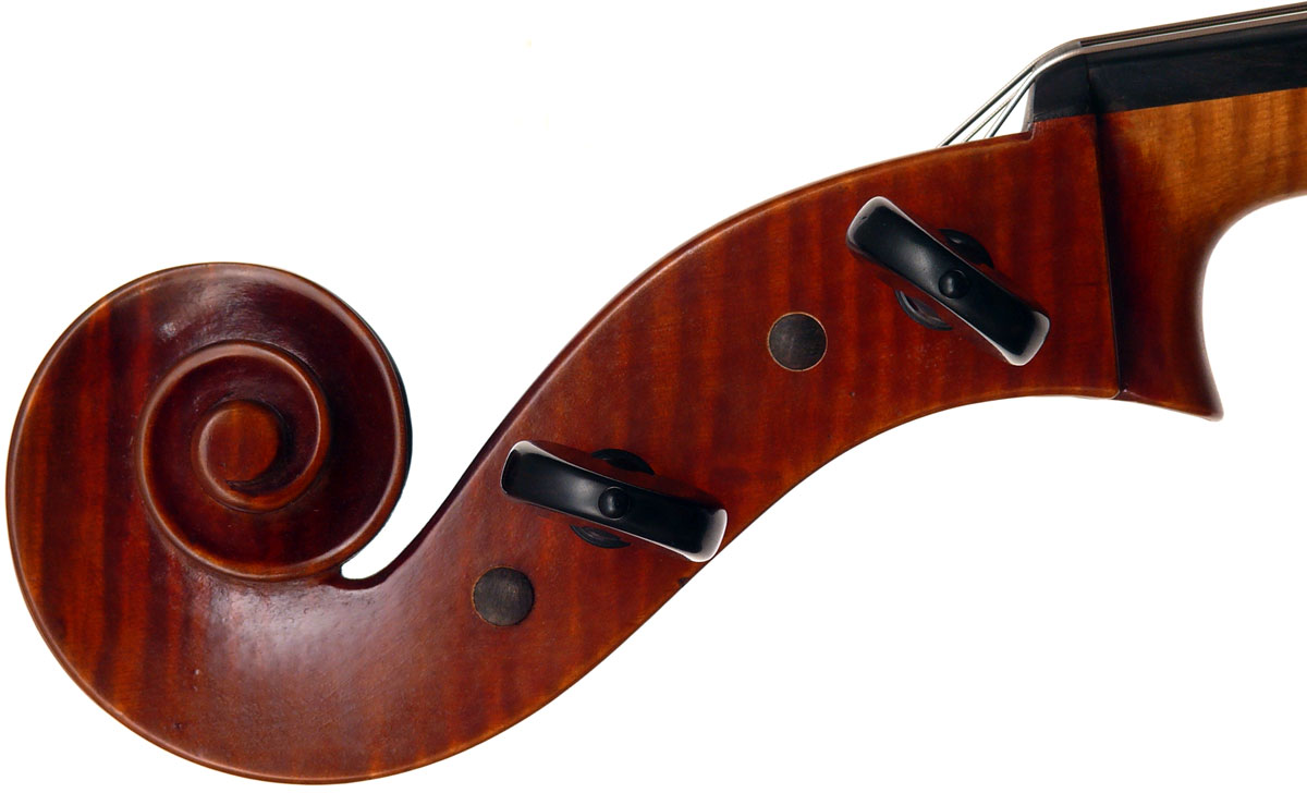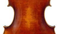 The two-piece back and sides are of well-flamed maple with an distinct regular straight narrow curl that truly appeals. Material for the top is also well-chosen - high-grade tone spruce with narrow to medium growth lines at the centre line opening slightly to the flanks. The neck and scroll are a repeat of the material used in the back. The deep red-brown varnish is characteristic of French work and beautifully compliments the wood, adding a rich lustre to the appearance.