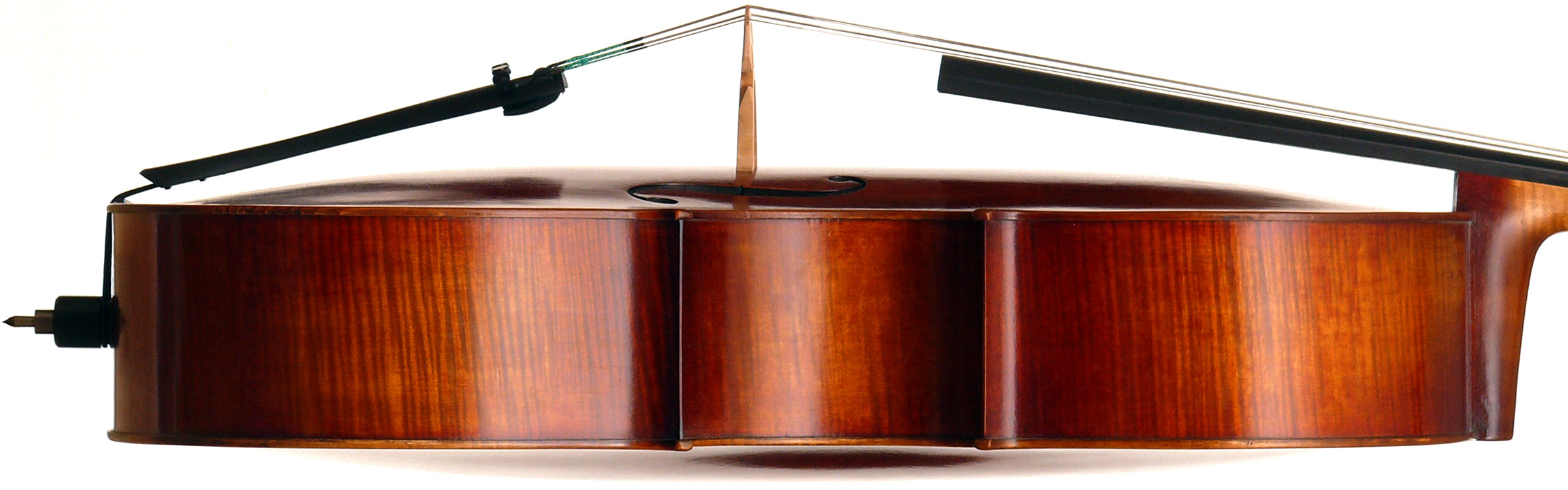 In this instrument the objective was strong tonal properties. The result is a cello representing an amalgam of excellent workmanship and an excellent choice of materials resulting in excellent tonal properties which competes with the best output of some leading master instrument builders.