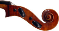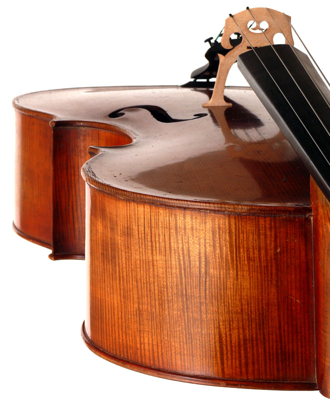 With this cello one is immediately aware of the really fine choice of materials, clearly selected for visual appeal as much as for tonal property. Refined workmanship throughout and high transparency in the varnish contribute greatly to a very attractive and appealing instrument where visual beauty is eclipsed only by its superb tonal properties, which can be described strong, robust and open, well-balanced and with strong projection. It speaks with ease and responds comfortably to any demand made on it.