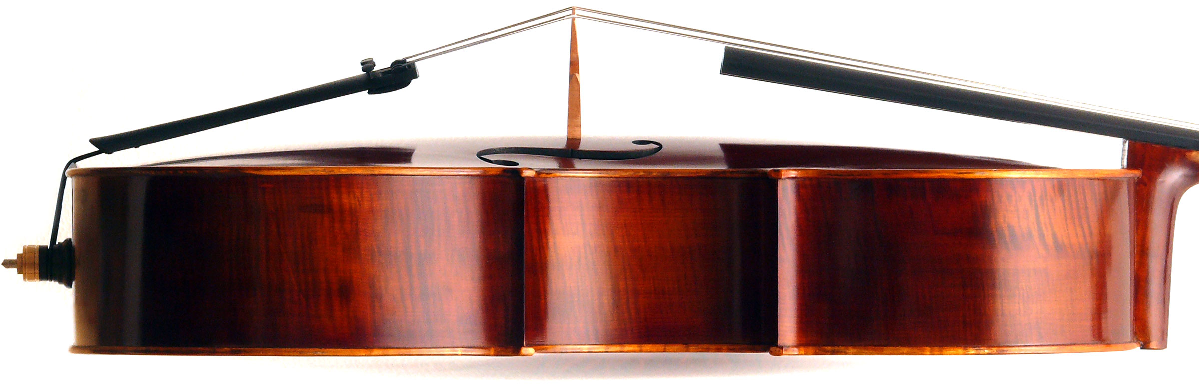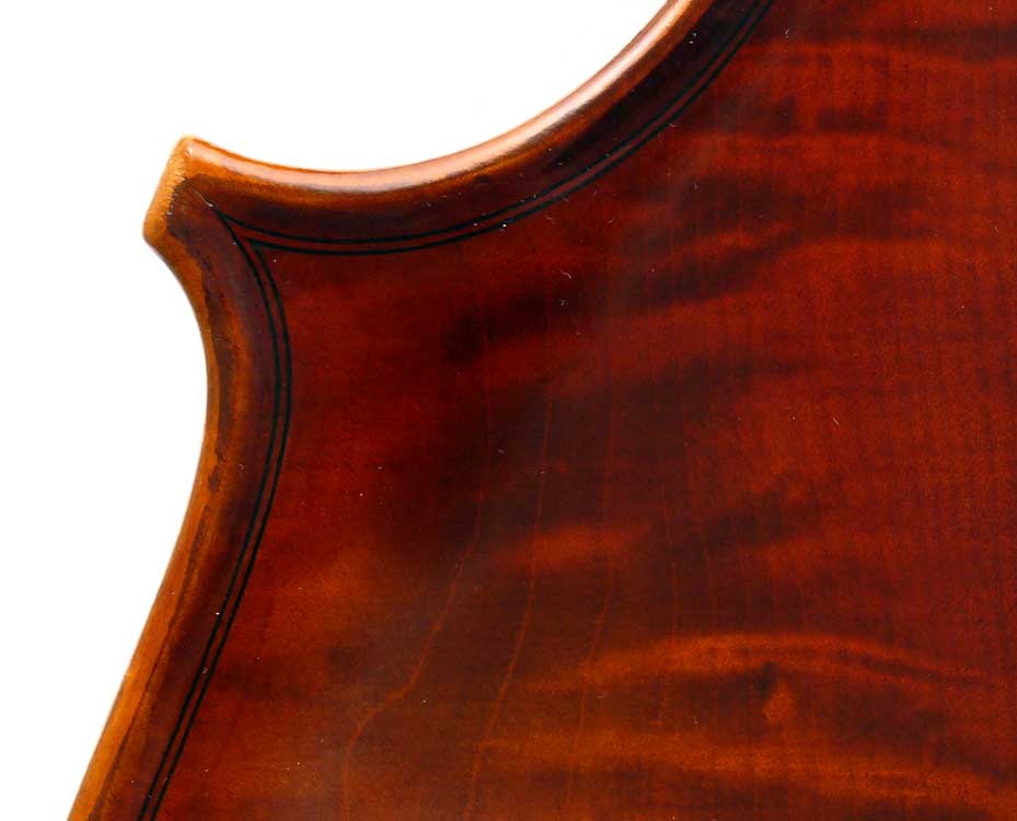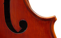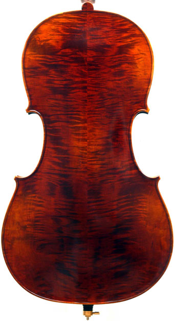 Three things are immediately apparent in this cello: firstly, it is very well-toned throughout the register, it speaks easily with great response throughout the dynamic range; secondly, it is a very beautiful instrument of exceptionally attractive materials, especially in the back; and thirdly, the workmanship in it throughout is superb, notably in the purfling and corners where accuracy prevails, and also in the scroll, which is elegant and nicely balanced.