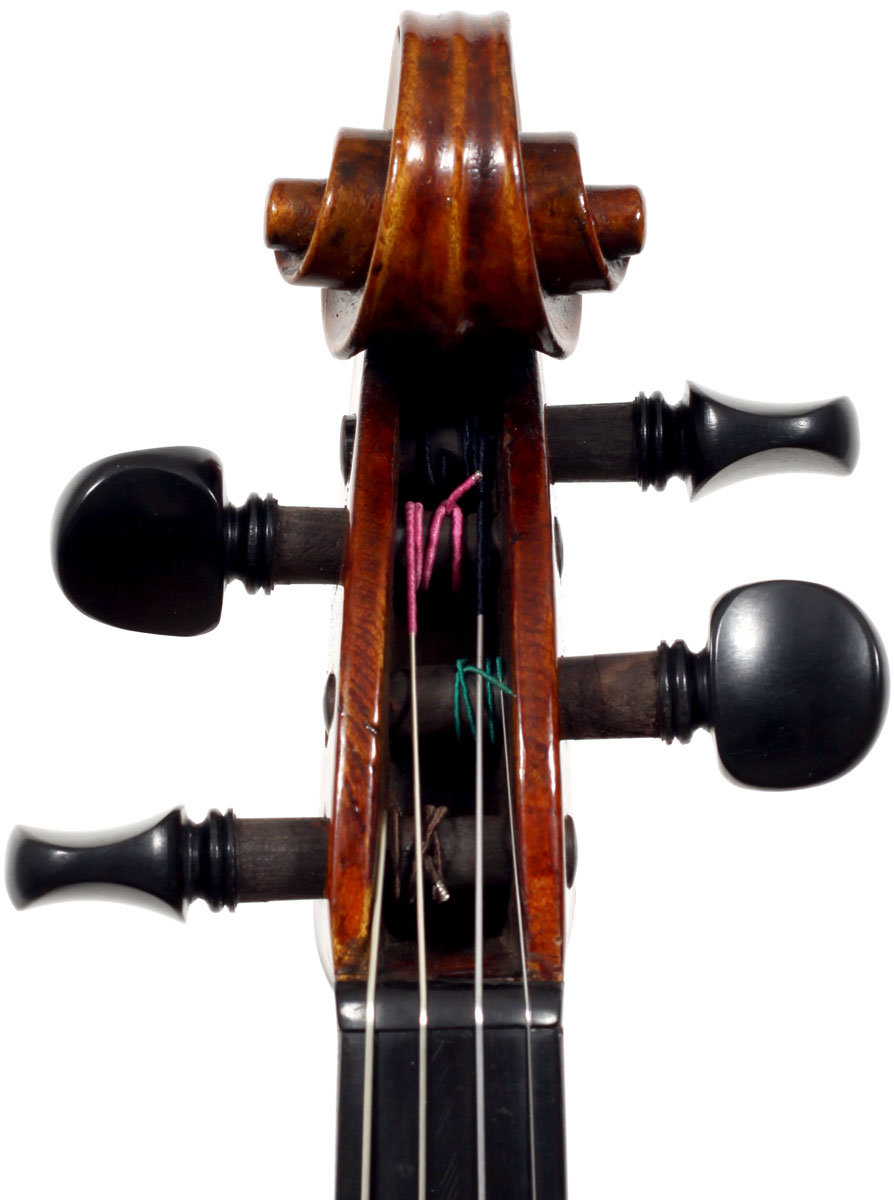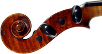 It should be stated that the neck and scroll are not original to this violin, but is by the important French maker, Didier Nicolas, L'ainé (1757-1833). The previous neck and scroll definitely wasn't original to the violin, was of very poor quality and was poorly fitted. I had this Didier Nicolas neck in my collection (previously from the J. J. van de Geest collection) and after some analysis it was clear that the Nicolas neck would fit perfectly onto this violin - even the varnish matched. The neck block was replaced and the Nicolas neck and scroll fitted, making for a superb combination in an excellent violin.