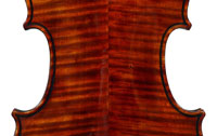 This violin is made of finely selected materials - the top is of unusually good tone spruce with a very fine growth lines at the centre seam, opening slightly to the flanks. The top is in excellent condition with only minor repairs. The back and ribs are of nicely figured maple with a distinct medium to broad curl, making for appealing flames. The Fs reveal a steady and experienced hand. It is particularly the reddish brown varnish, with a touch of ruby, that give this violin a particular visual appeal that lingers and keeps drawing the eye.