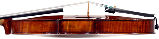 This is an unusually attractive violin in excellent condition and with exceptional tonal properties which lend itself to solo concert performance. The tone is rich and focussed with intensity and projection in the g-string and clarity and power in the high register. It responds with ease.