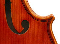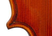 No matter how carefully I examined it, I couldn't fault it anywhere. The choice of materials is superb - from a lovely even-grained tone-spruce top to the beautifully flamed two-piece back, the wood shows discernment. It is in the attention to detail that the story is told - in the purfling, corners and crisp Fs one reads the seriousness intent of conforming to the traditions of good lutherie, transcending mere functionality and commercialism.