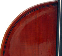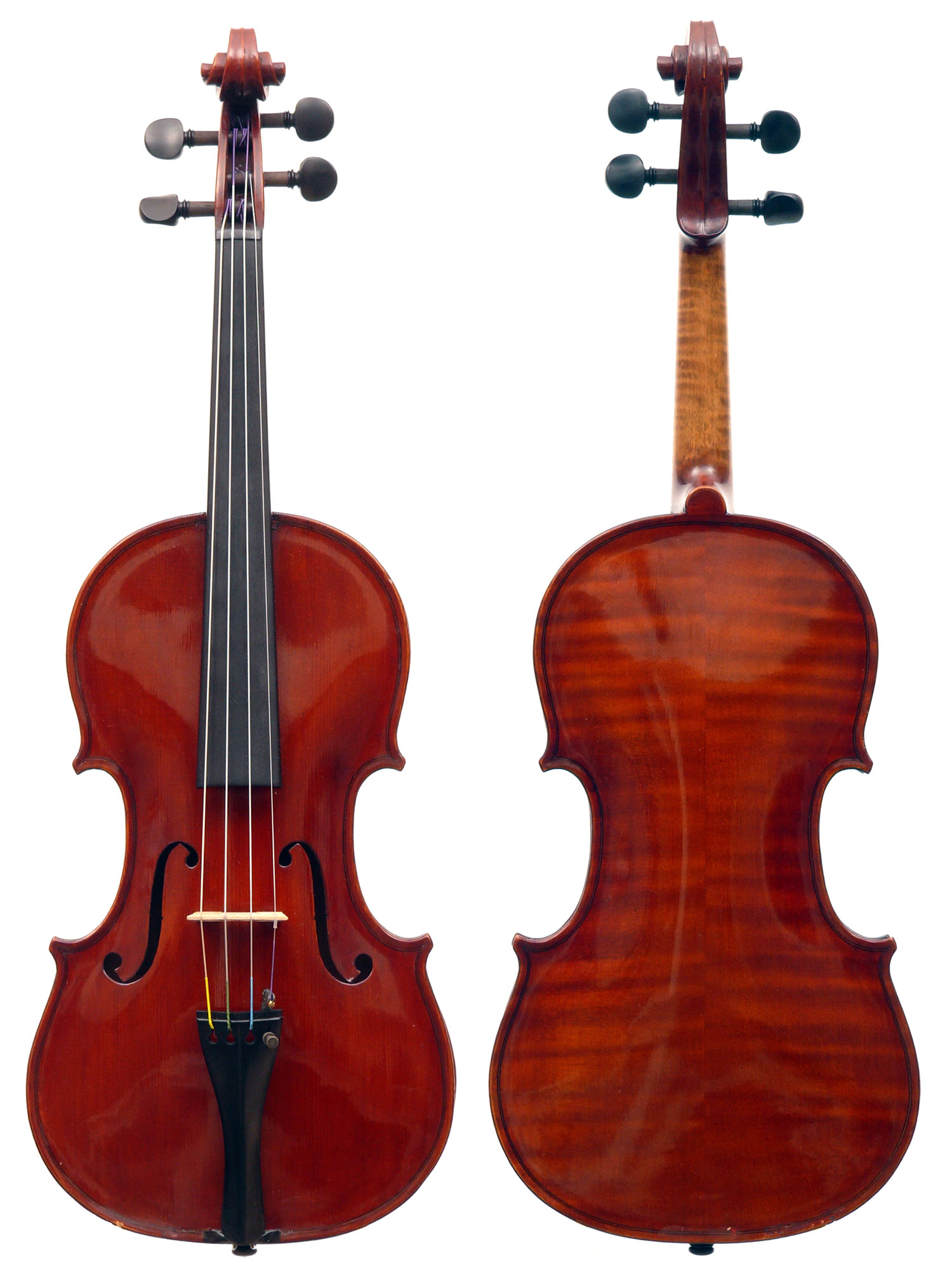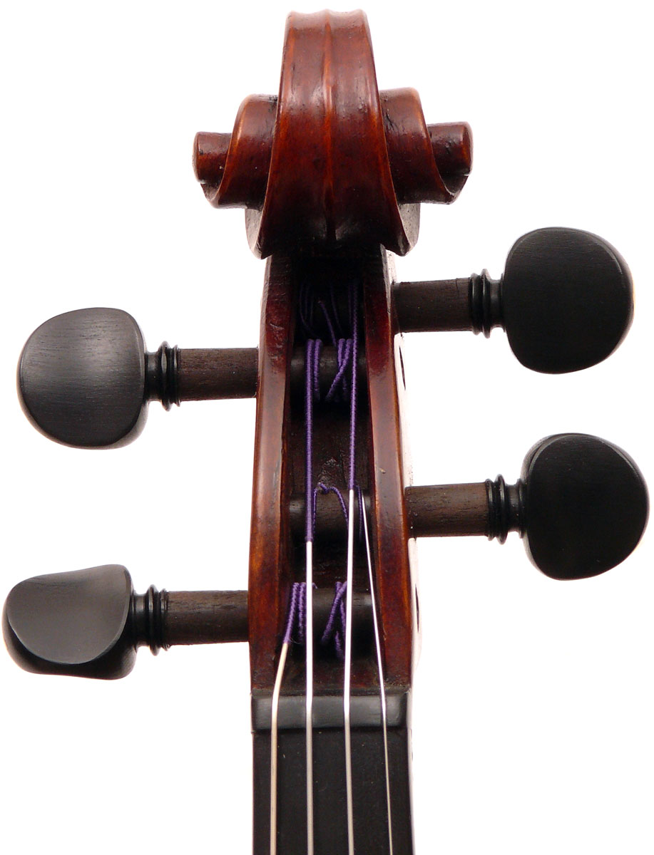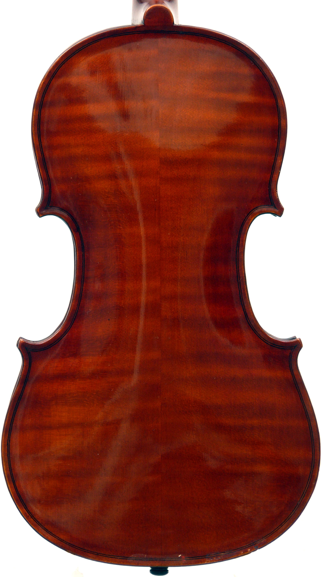 After 102 years this violin is still in impeccable condition, as if made yesterday. One is struck by the very attractive wine-red varnish, reminiscent of French preferences, and by the tidy workmanship throughout, notably crisp and sharp workmanship in the Fs with nicely fluted palettes.