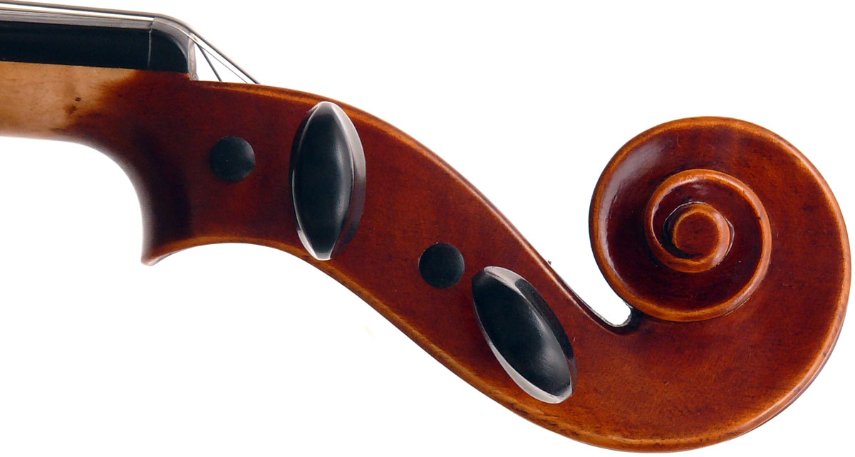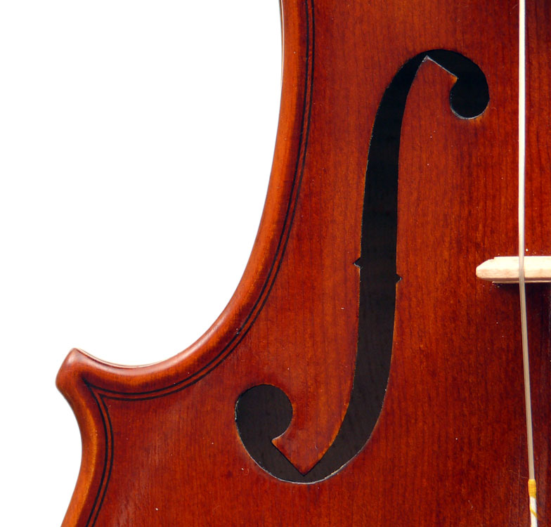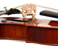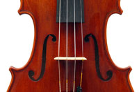 All who have played this violin have expressed appreciation for its excellent tonal properties and good workmanship. The choice of materials is excellent - from a lovely even-grained tone-spruce top to the beautifully flamed two-piece back, the wood shows discernment. It is in the attention to detail that the story is told - in the purfling, corners and crisp Fs one reads the intent of conforming to the traditions of good lutherie, transcending mere functionality and commercialism.