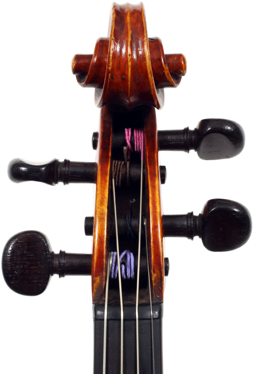 With a back length of 39.6 cm it is at the smaller end of the range, as far as violas go. It has the number B 15 discreetly stamped into the front edge of the fingerboard, facing the bridge. Both Beare's in London and W.E. Hill & Sons used such numbering systems on instruments sold through their businesses, so this suggests that this viola at some time was sold by one of those two companies.