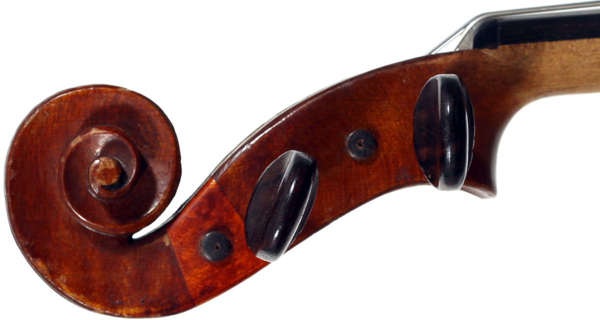 A fracture in the pegbox is correctly repaired through supportive grafts into the two flanks, lending it perfect solidity and stability.