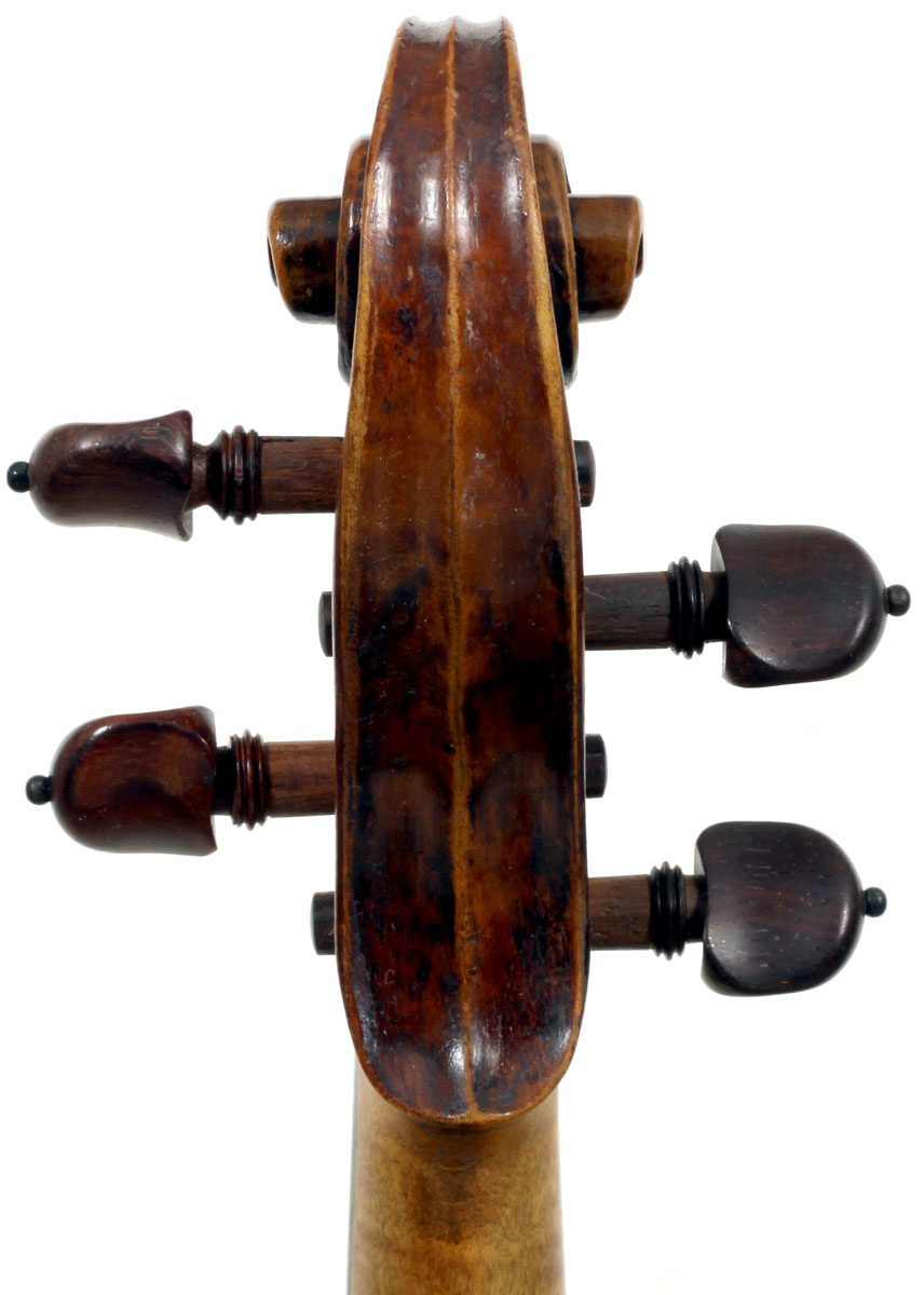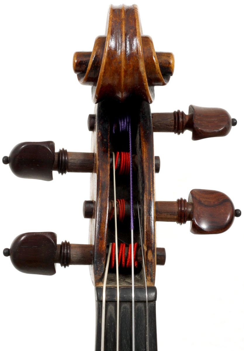 This is an exceptionally small viola - its back length is 38.7 cm. It has been played a lot and for good reason - it is comfortable and well-toned. It has been in professional use until recently.