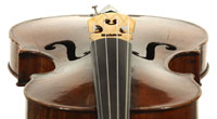 The one-piece back is genuinely attractive, of good mildly-flamed maple with a narrow to medium curl. The top is of good quality tone spruce, with narrow grain at the centre which widens to the flanks. The Fs and scroll are more perfunctory than refined. The pegs and setup are recent.