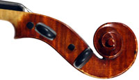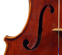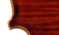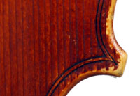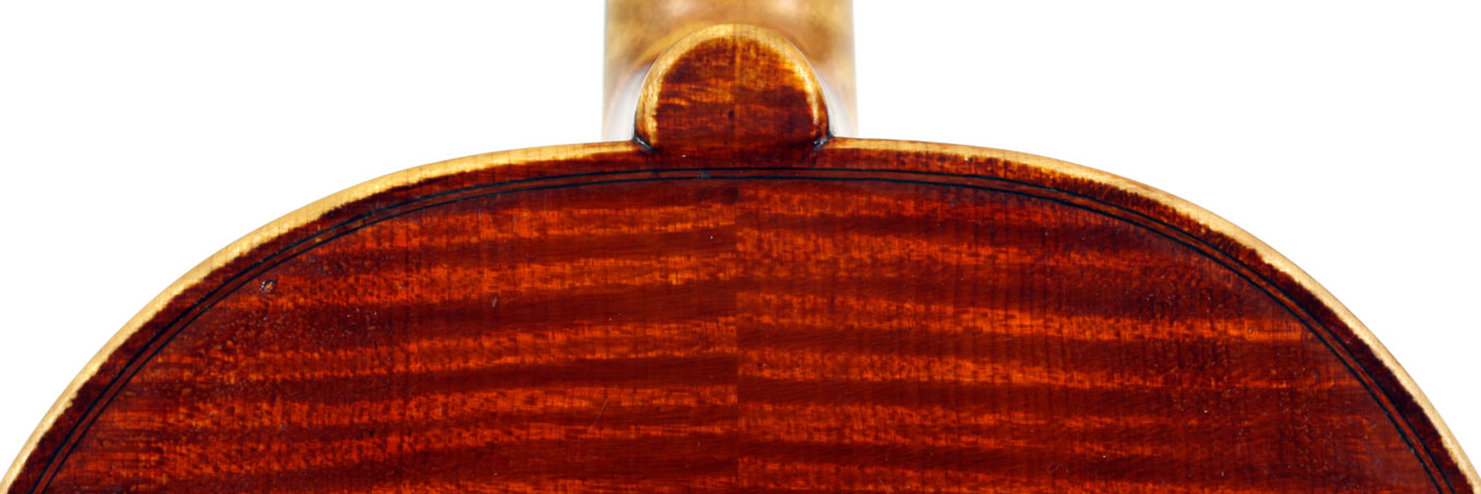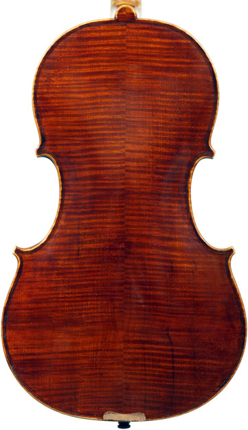 This superb viola, dubbed Lucia, was made toward the end of her apprenticeship in Cremona. It has a backlength of 40 cm and is made of a superb selection of materials - the two-piece back, ribs, neck and scroll are of excellent, nicely figured maple with a straight, even, narrow to medium curl running straight across the back. The top is of medium to open-grained tone spruce with the winter-growth lines widening to the flanks. The red-brown varnish compliments the materials well. The scroll is very well-balanced and the Fs, purfling and cornerwork show a steady hand with attention to detail.