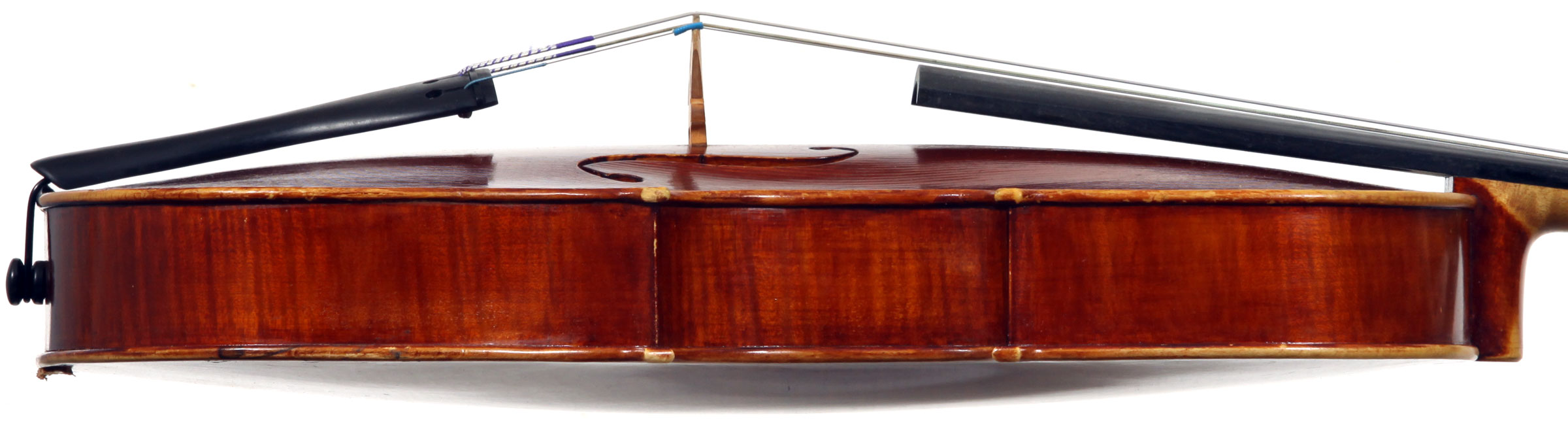 This viola is structurally in impeccable condition, free from evident repairs or open seams. Some wear and incidental marks in the scroll and in the varnish are consistent with an instrument of this age.